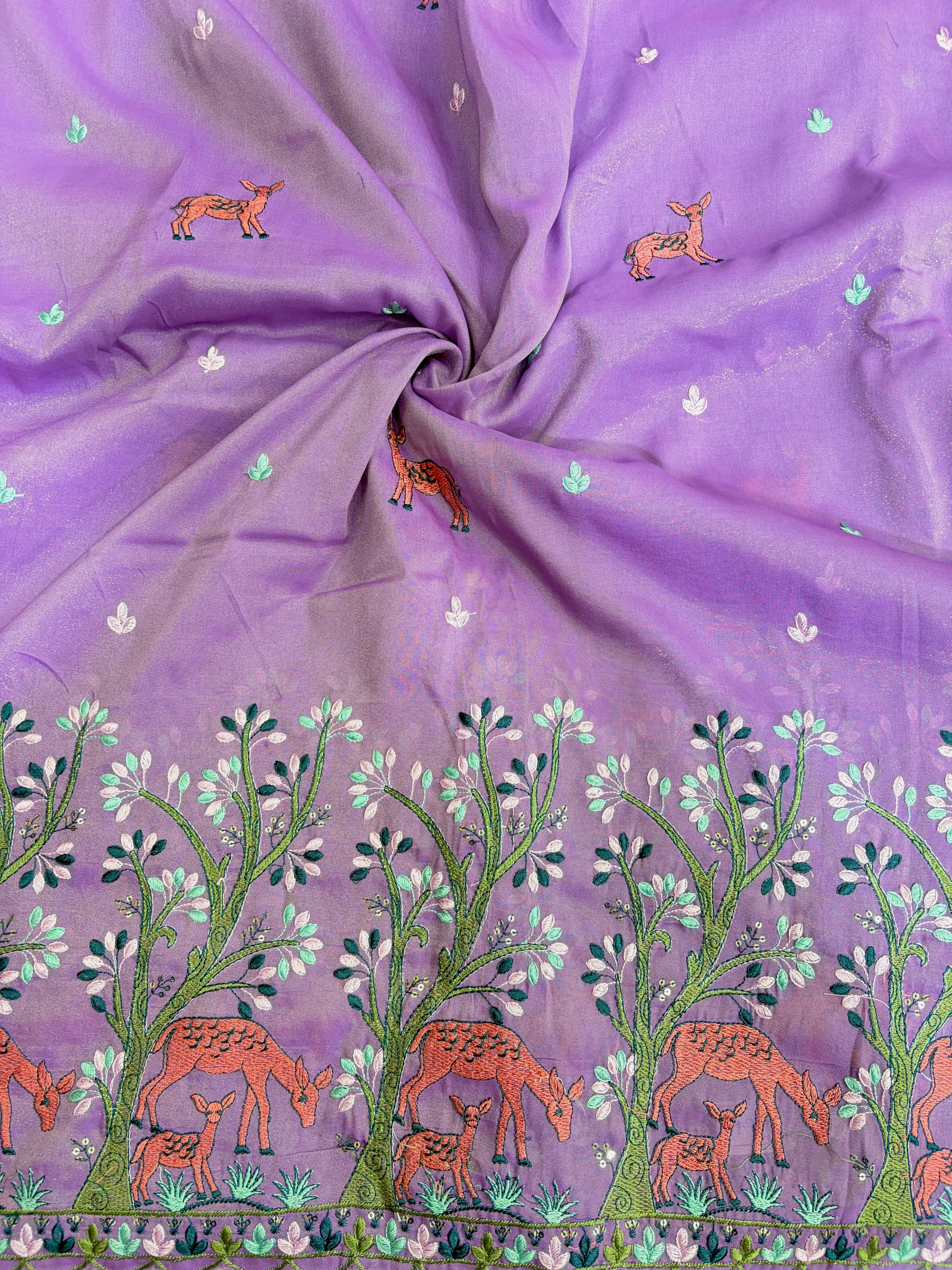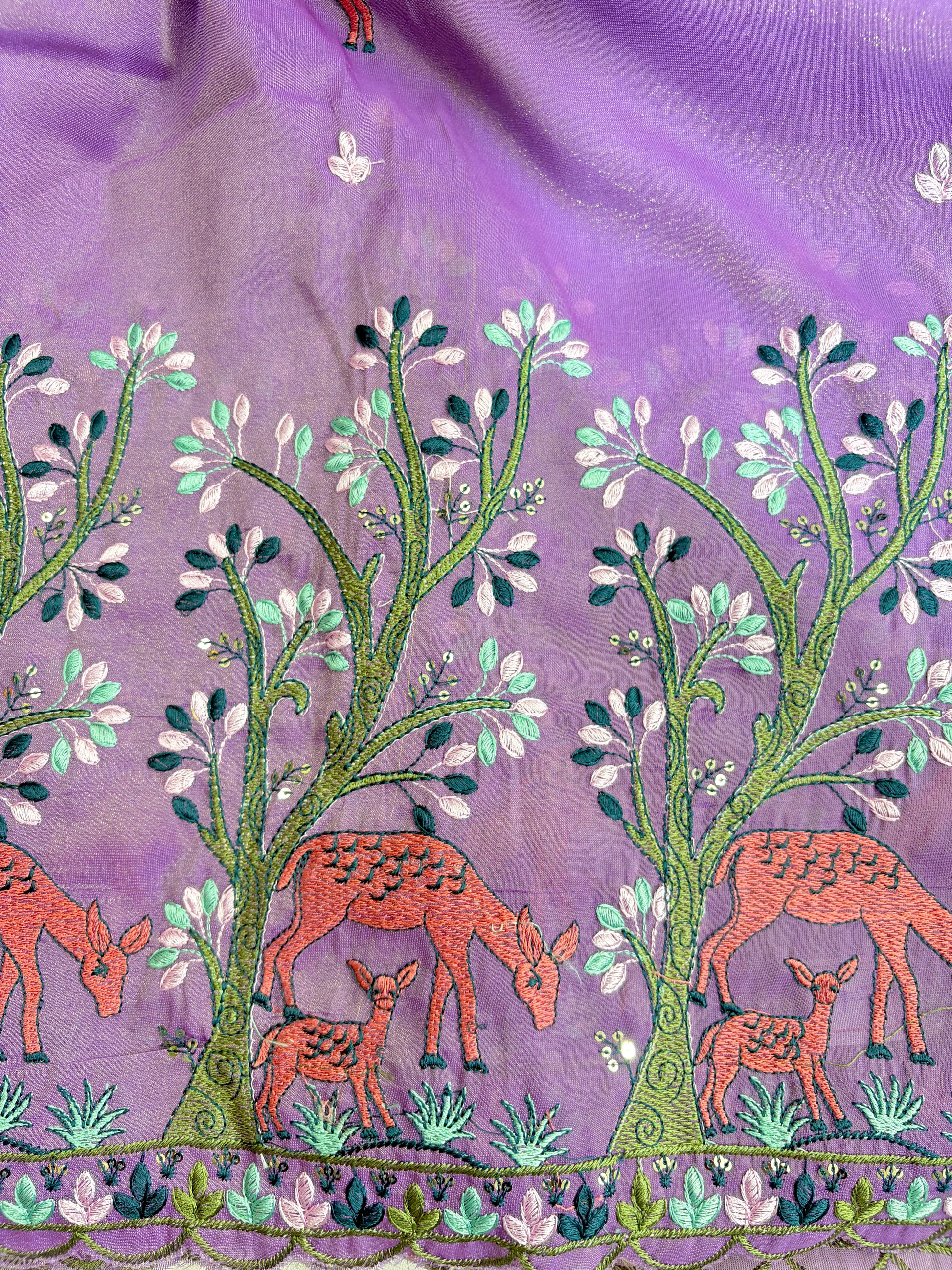 Premium tissue Embroidered Border Fabric – Designer Wildlife & Floral Work 44inch width