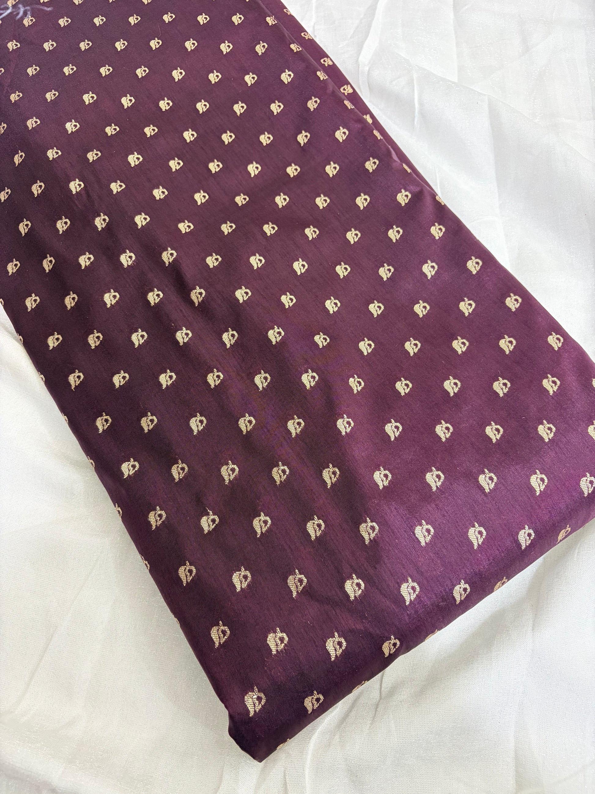 The delicate motifs are uniformly woven across the fabric, giving it a graceful, heritage-inspired look ideal for festive, bridal, and designer outfits. Soft drape, subtle sheen, and refined detailing make this fabric a premium choice for both traditional and contemporary silhouettes.