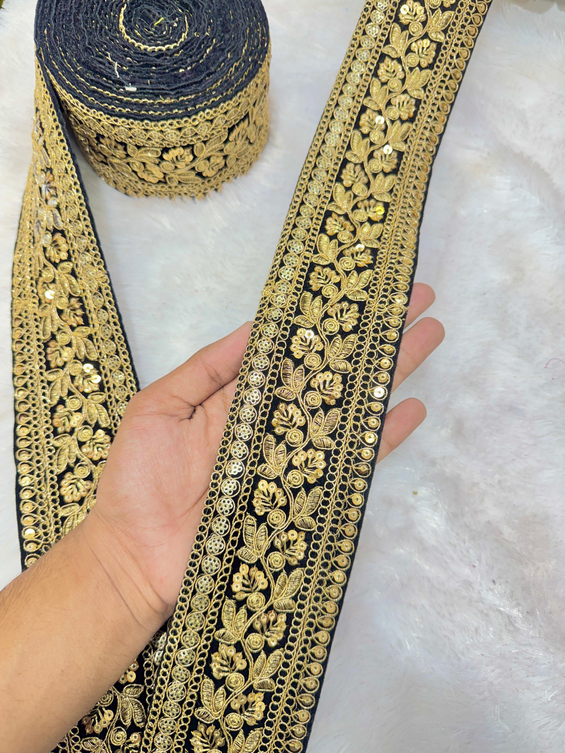 Premium velvet 3 inch gold Zari with sequins Embroidered border for sarees lehengas & Duppata’s Border (PACK OF 9 meter) GREEN SEQUINCES