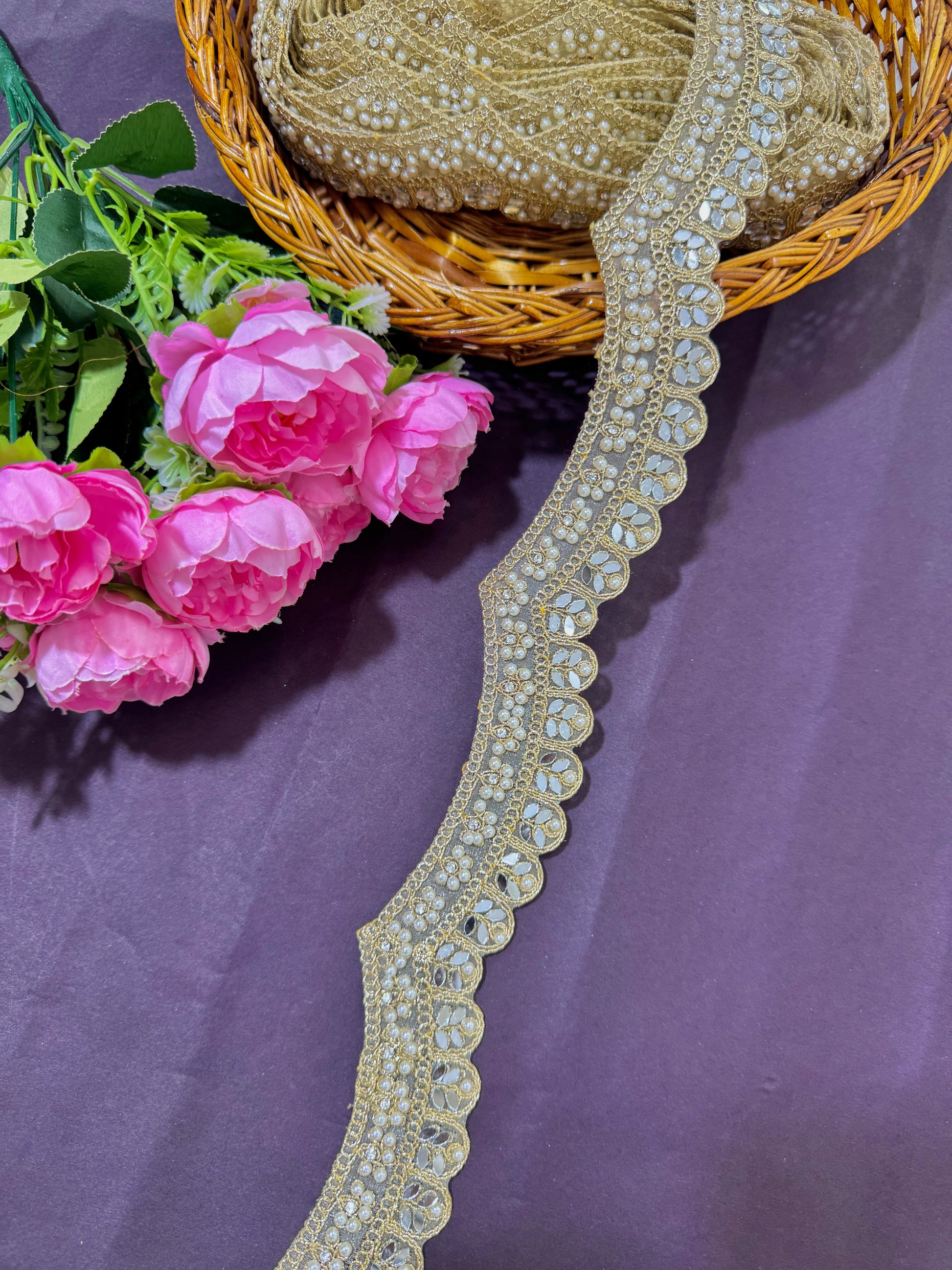 ✨ Premium Golden Embroidered original mirror with stone and pulse Lace Border – 9 Meter Pack ✨Sare lehanga and etc lace border