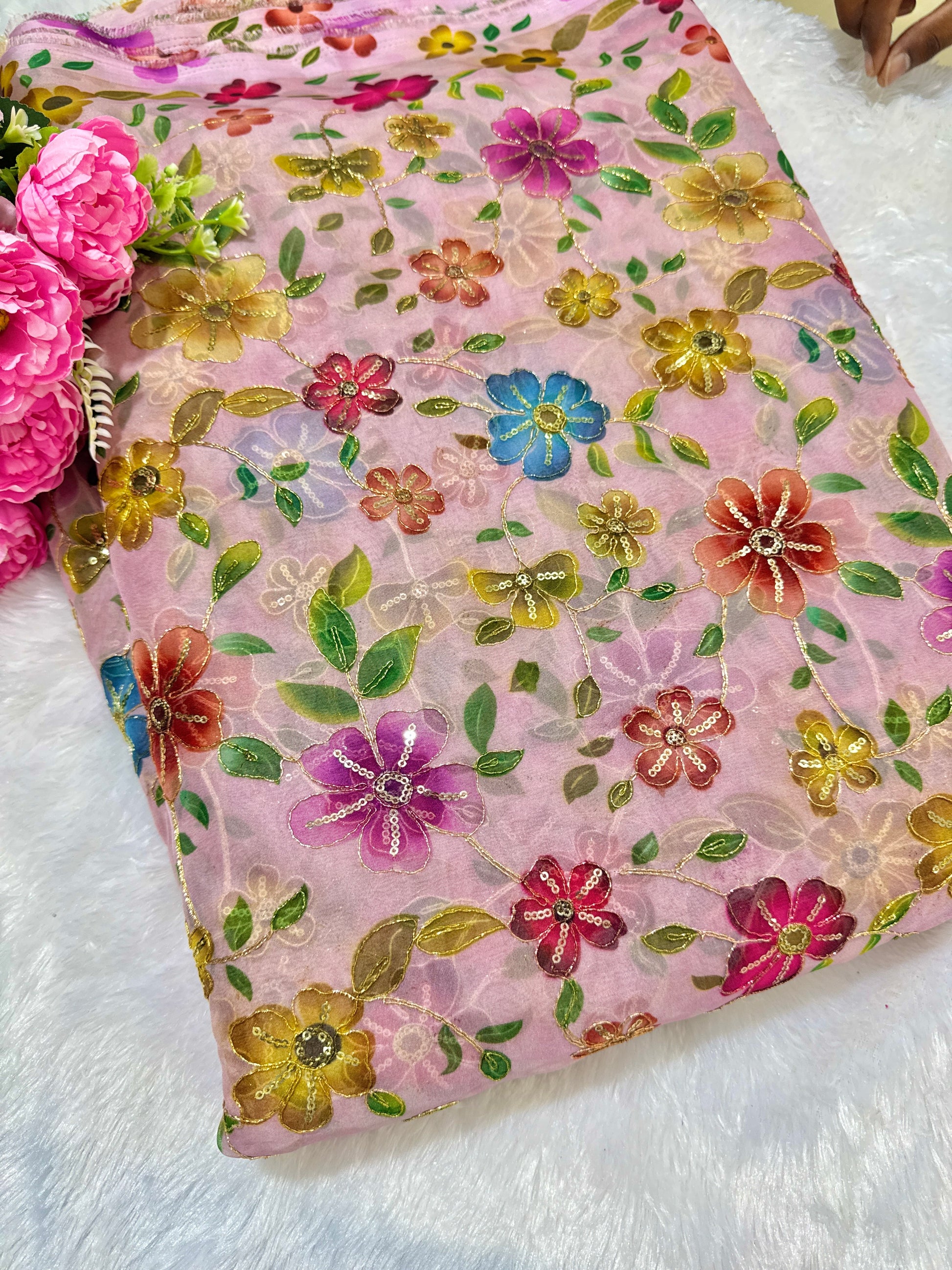 ✨ Tapy Silk Zari Work Fabric with Multicolor Floral Embroidery – 45 Inch Width