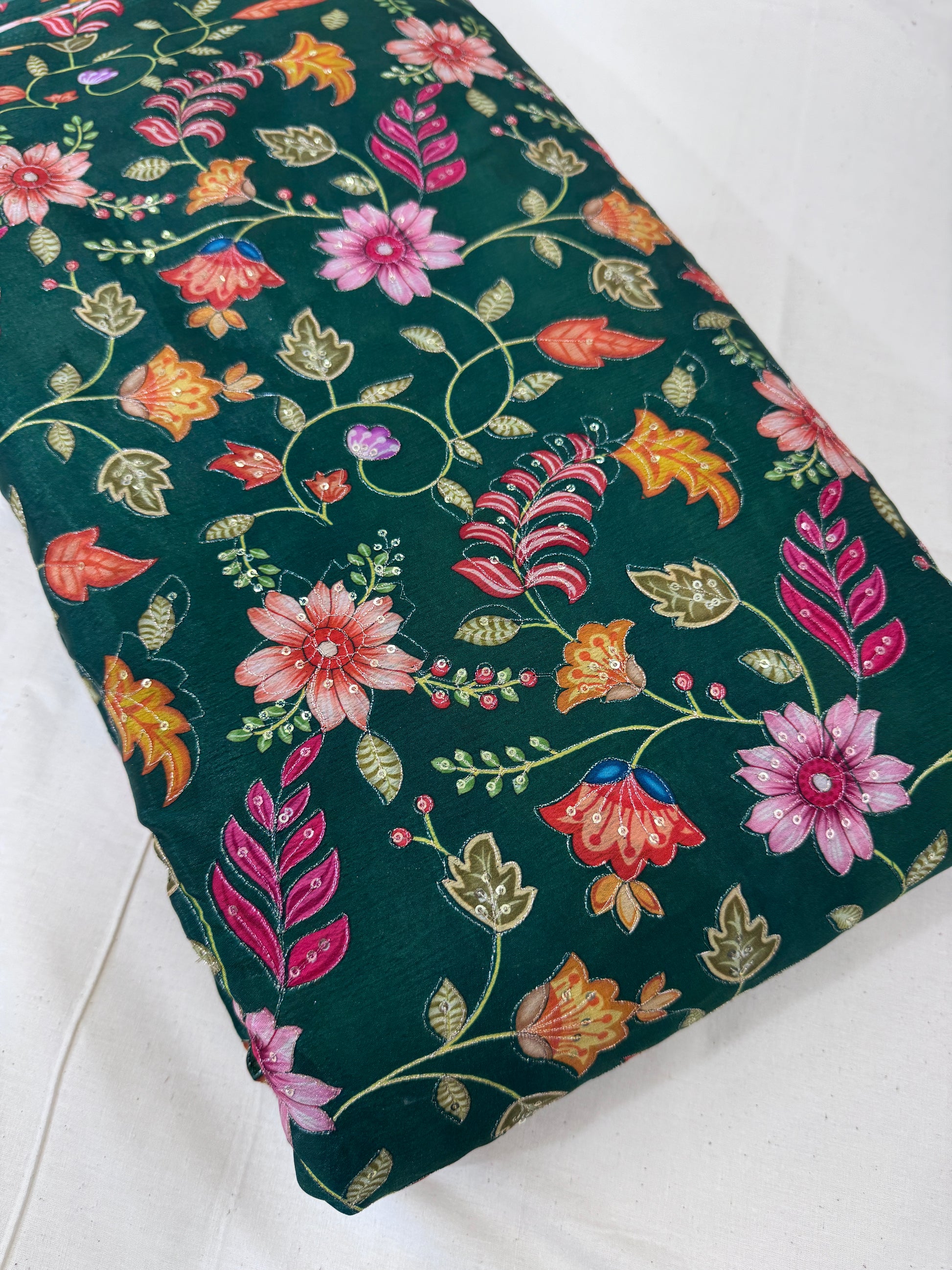 🌸 Elegant chinon Multicolor all over position, Printed Silk Blend Fabric 44.-45 inch bottle green