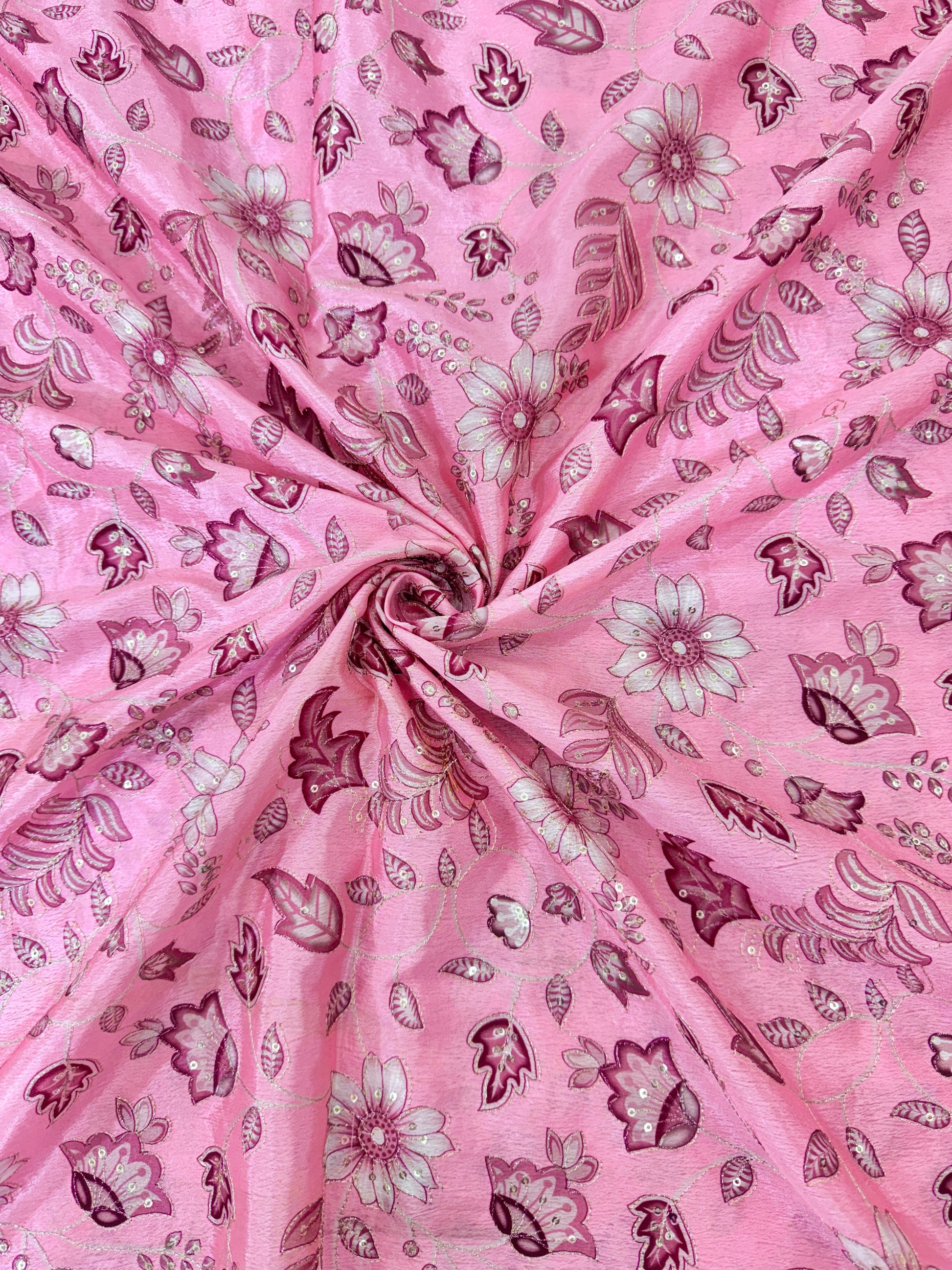 🌸 Elegant chinon Multicolor all over position, Printed Silk Blend Fabric 44.-45 inch PINK