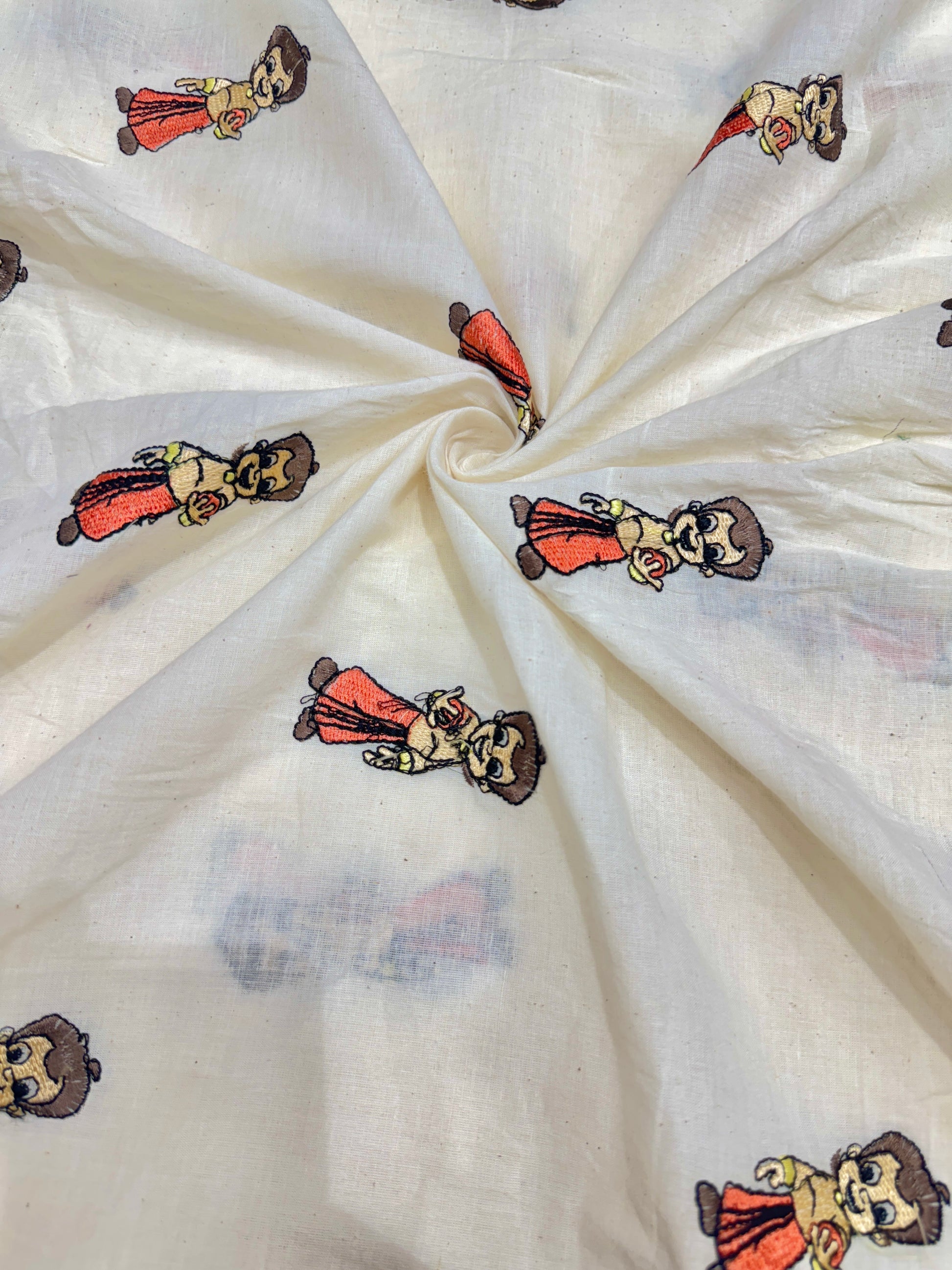 Add elegance to your collection with this off-white embroidered fabric featuring delicate floral motifs and green leaf accents. The lightweight fabric is soft, breathable, and perfect for creating stylish tops ,kurtis, sarees, blouses, dupattas, or home décor accents. Its minimal yet charming floral embroidery enhances the overall appeal, making it suitable for festive wear, ethnic outfits, and casual chic styleKey Features: