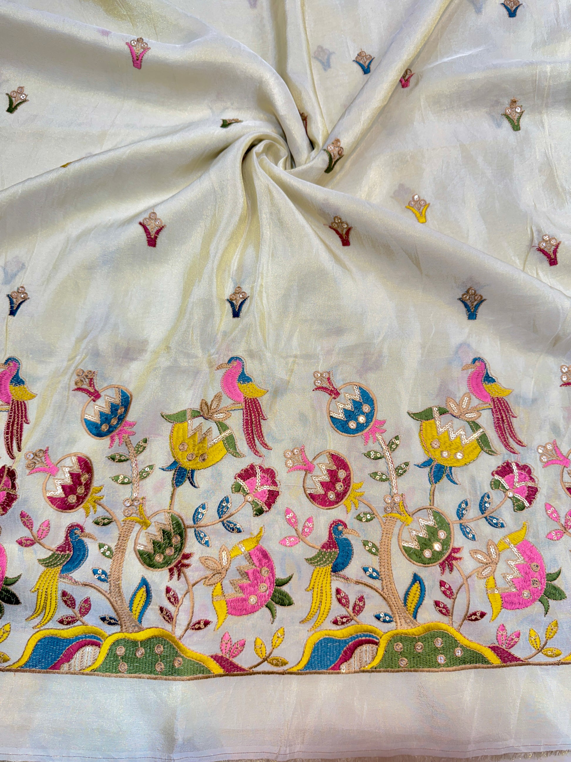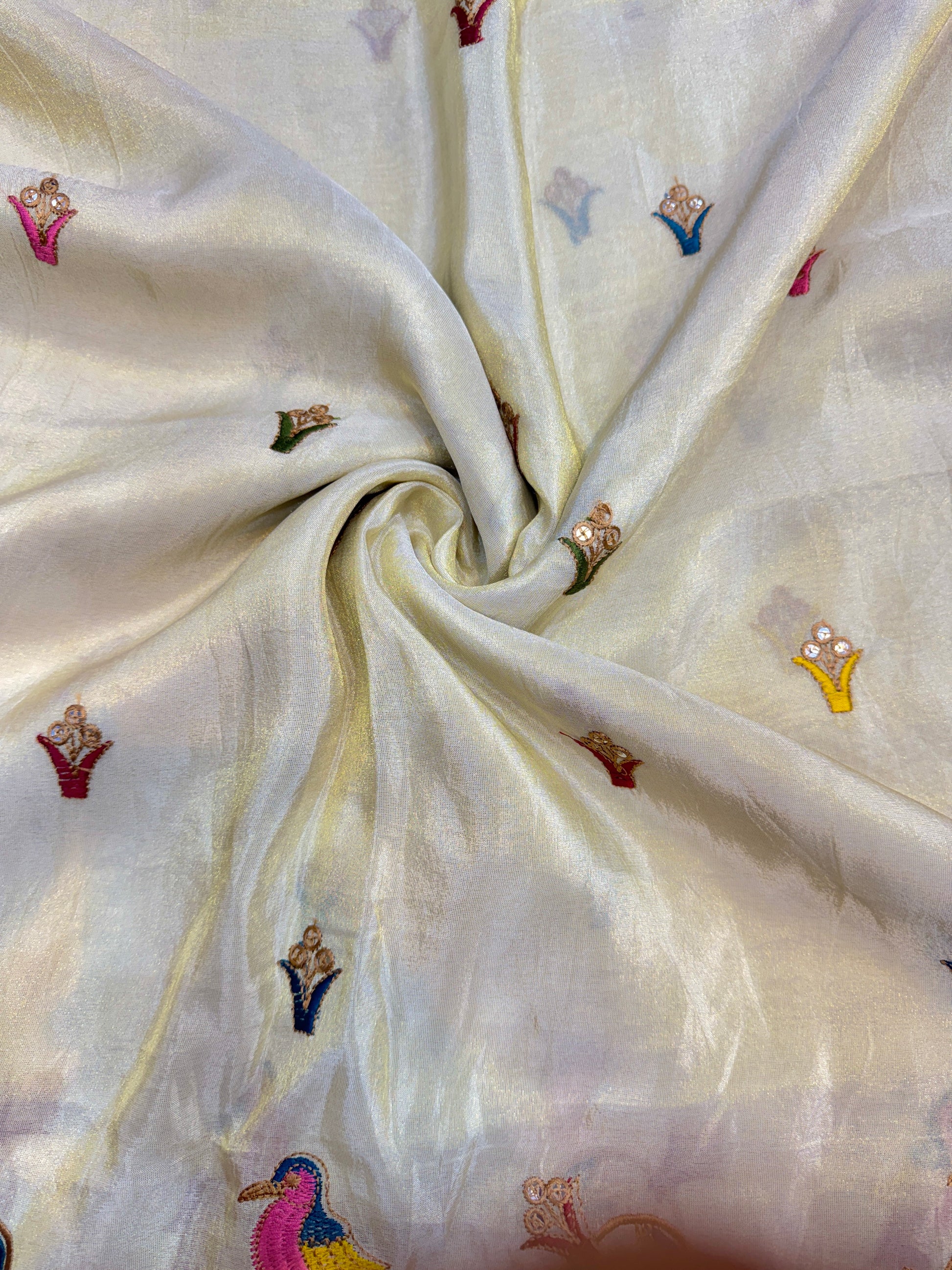 👗pure viscouse tissue zari with embroidered 🥻44-45 inch width