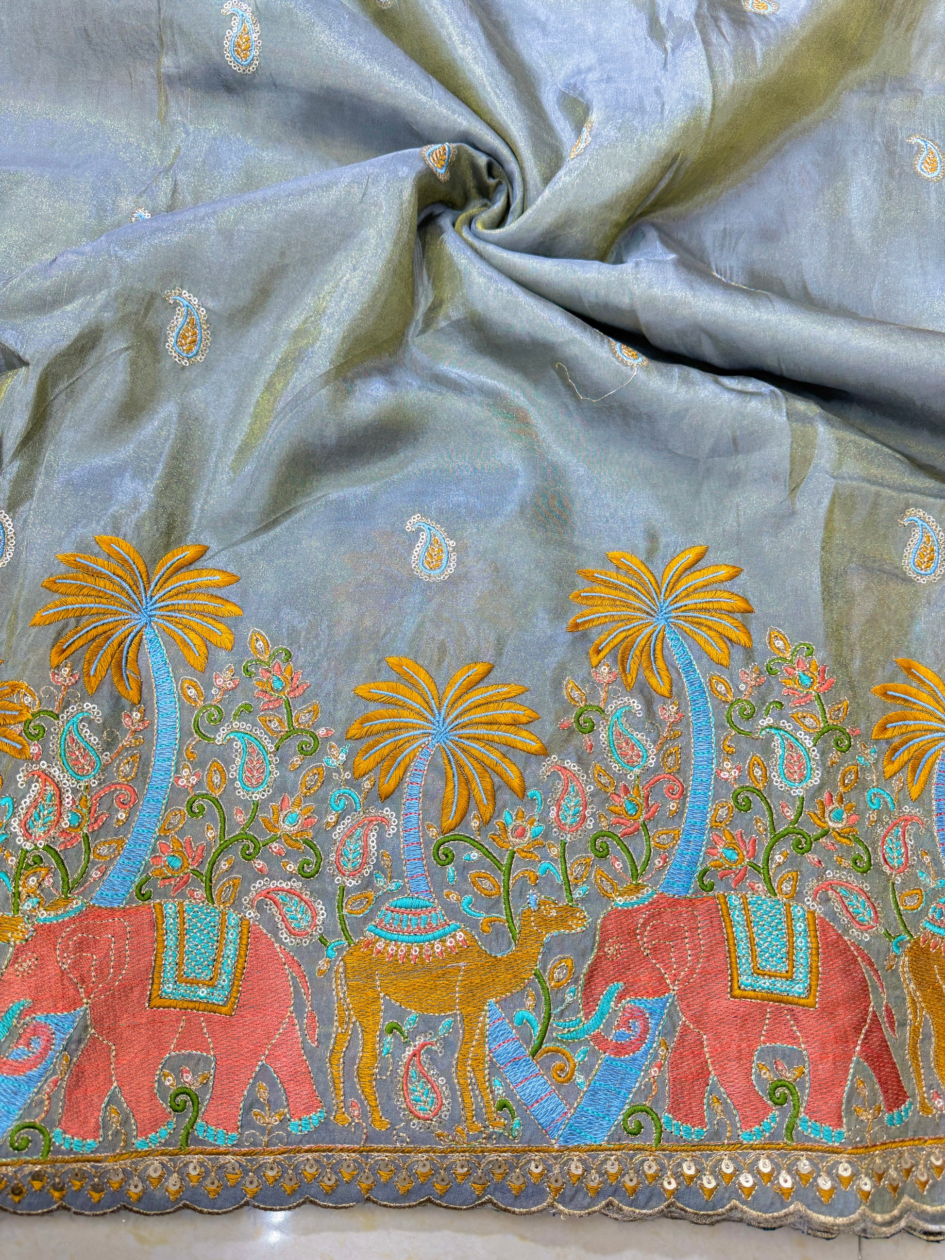 😍Pure viscouse tissu embroidery border 💕with elephant 🐘desing lehanga,Sari,blouse , dress 45-inch width