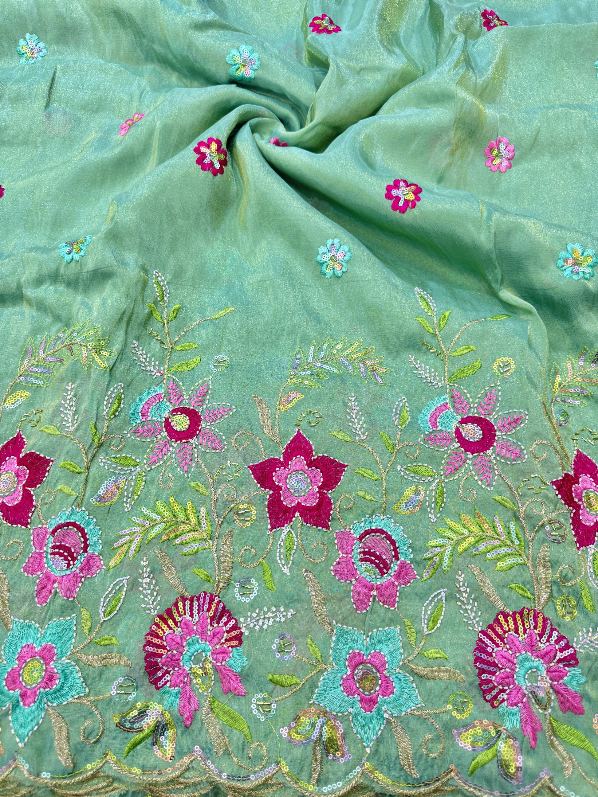 BEAUTIFUL 😍PURE VICOUSE TISSUE MULTI FLOWER 🧵 EMBROIDERY WITH 🌺CUTWORK BORDER 44INCH WIDTH