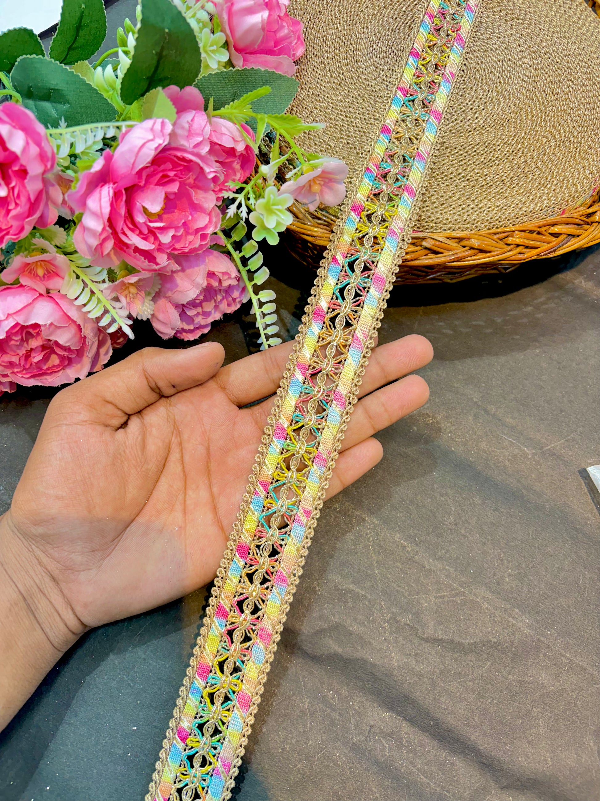 - Perfect For: Sarees, lehengas, dupattas, and festive ethnic wear – one of the finest multicoloured designer saree laces.