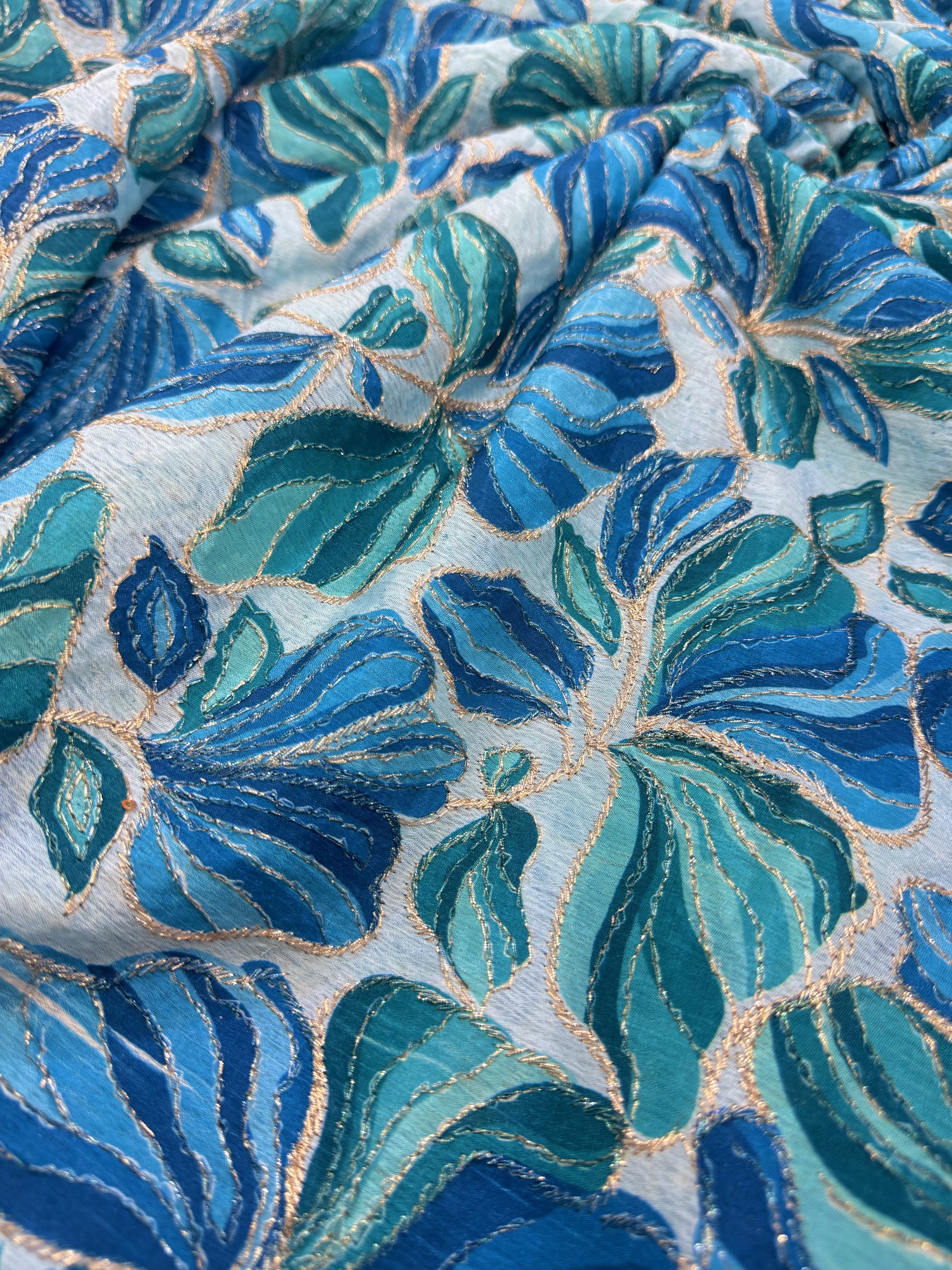 Crafted from high-quality chenon fabric, the Bold Bloom Sequin Embroidered Chenon Fabric features intricate sequin embroidery that adds a sophisticated shimmer. Its unique design makes it an excellent choice for premium clothing and elegant sarees, ensuring both durability and a striking appearance suitable for special occasions.
