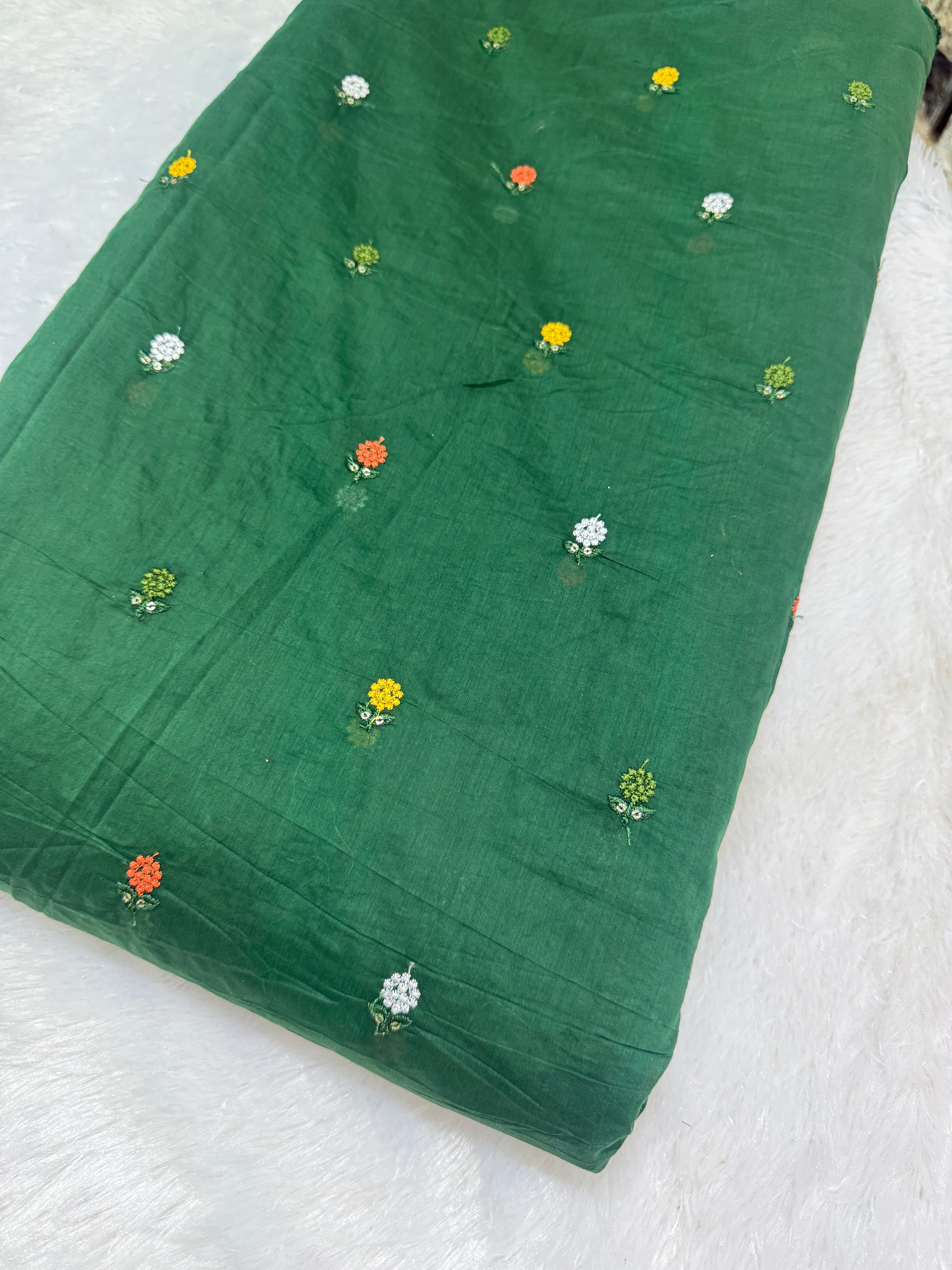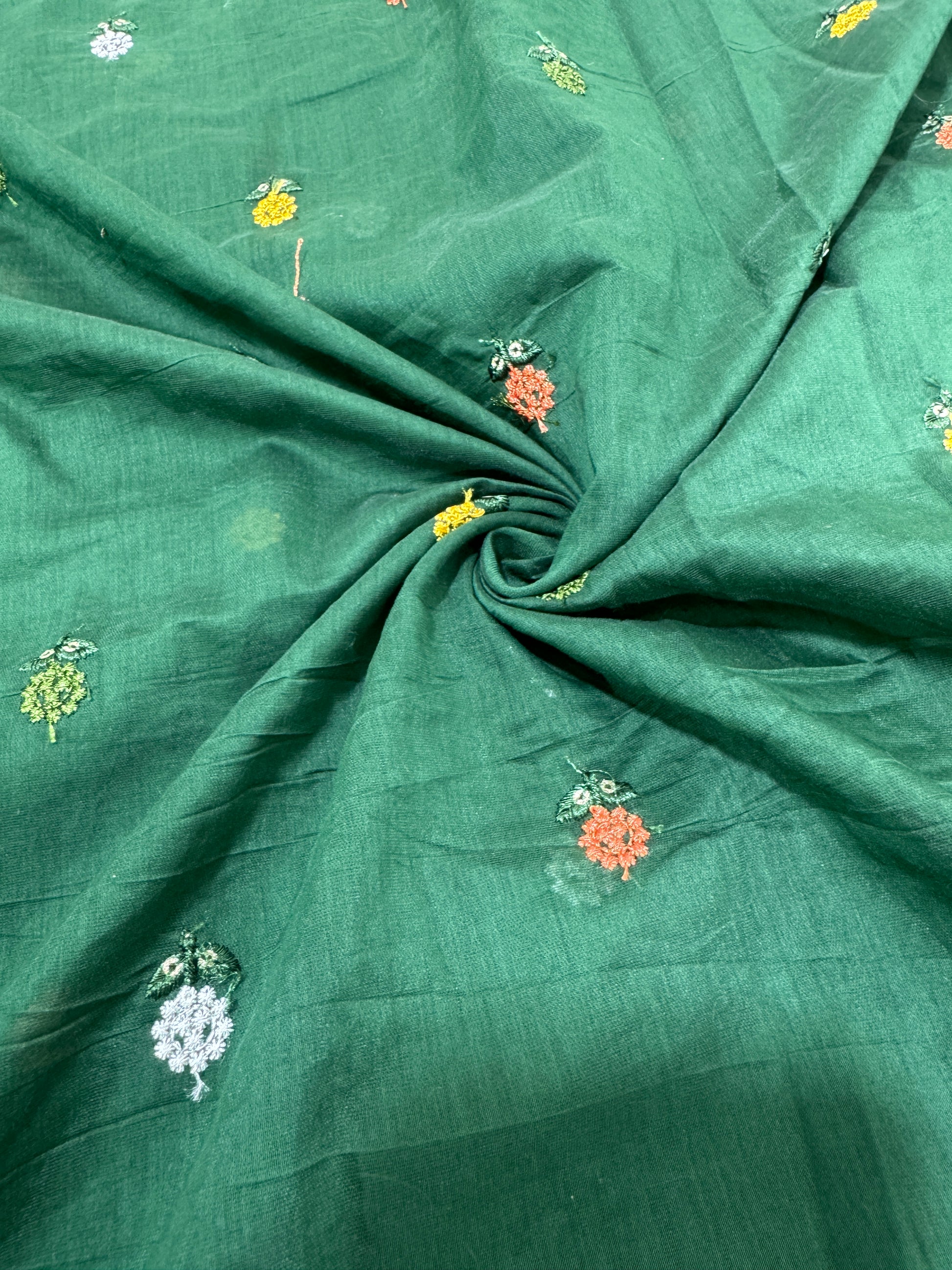 Bright green flower 🌼 💕Embroidered mal cotton Floral Fabric 44width