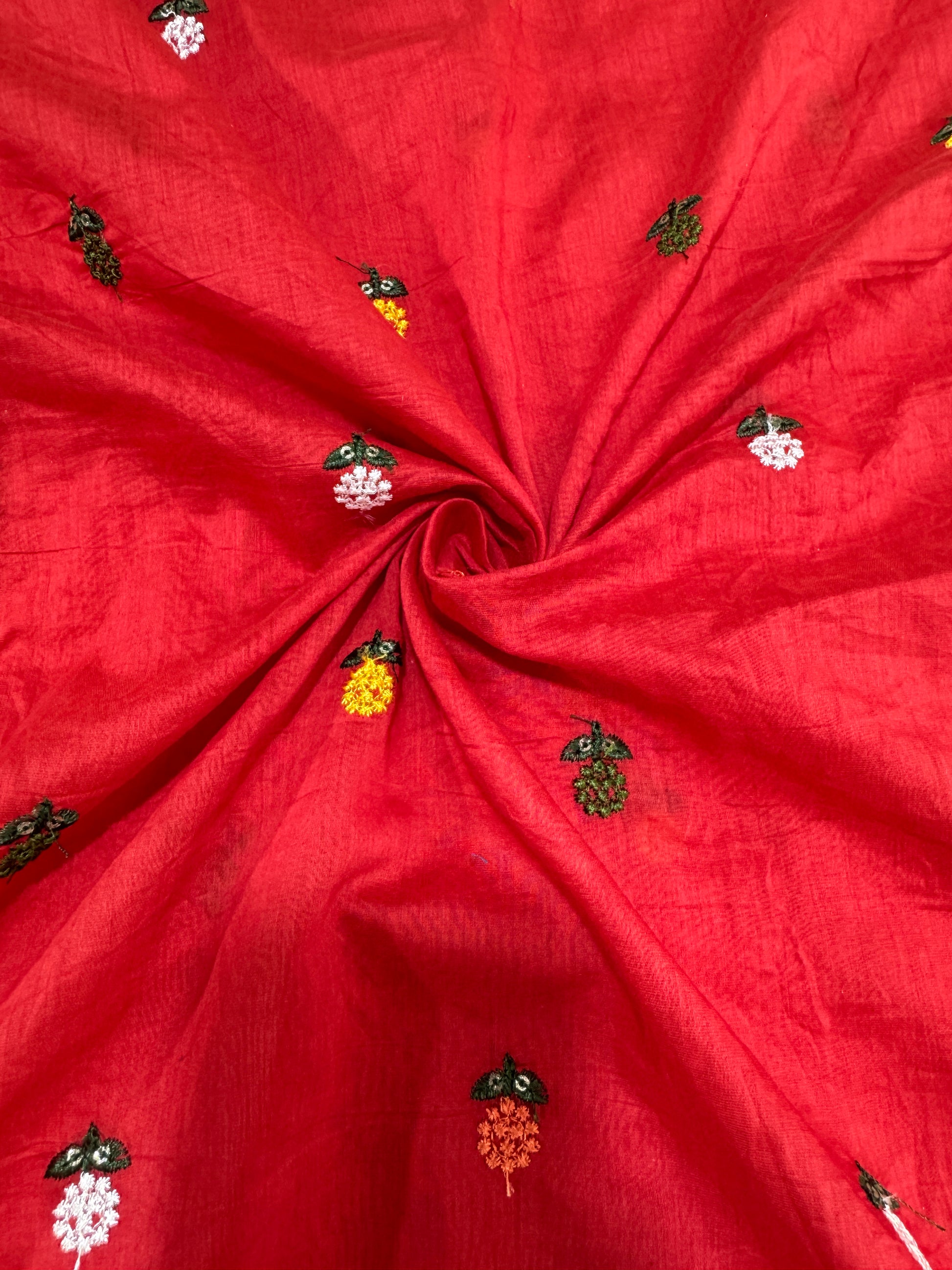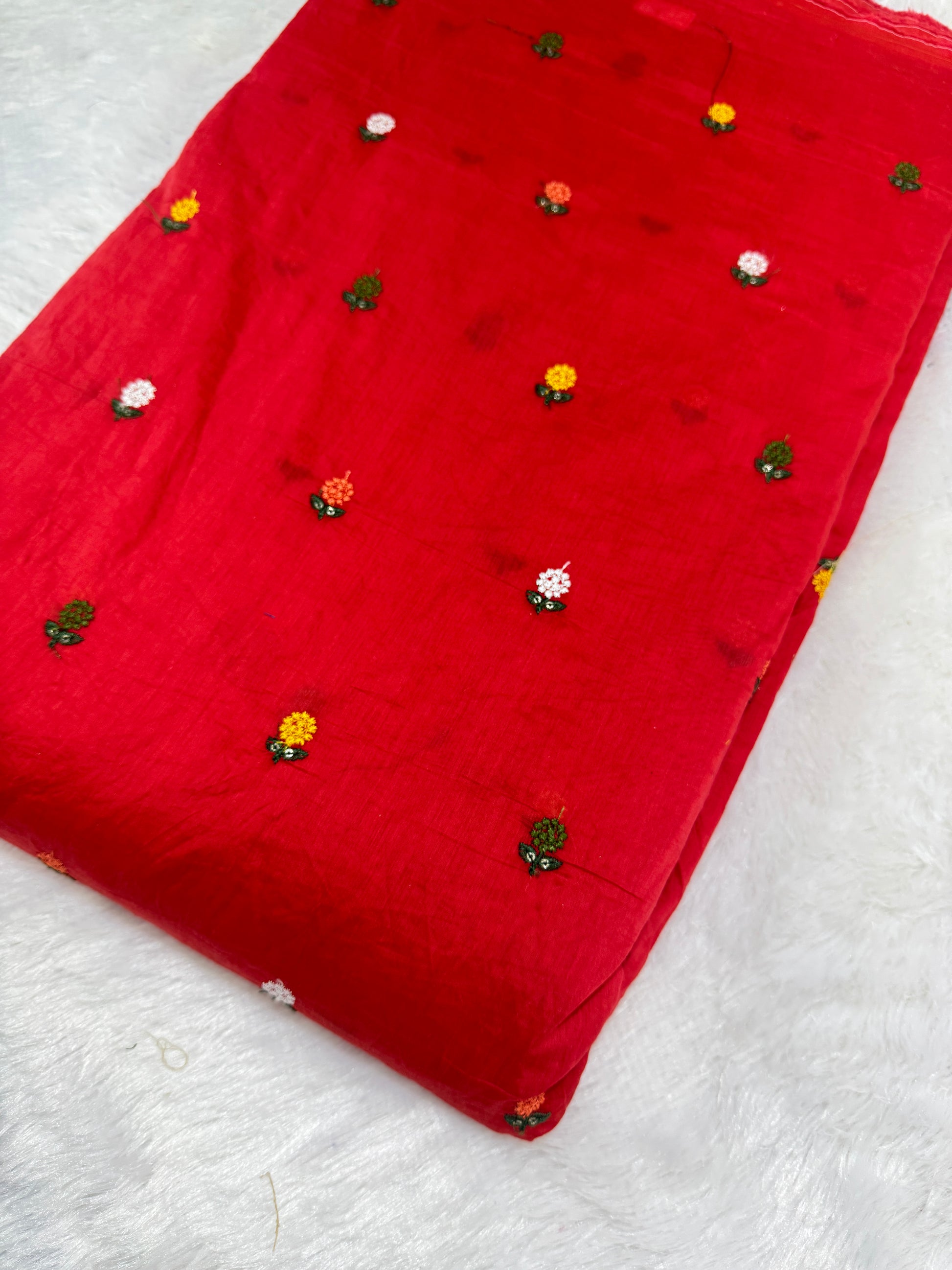 Bright red flower 🌼 💕Embroidered mal cotton Floral Fabric 44width