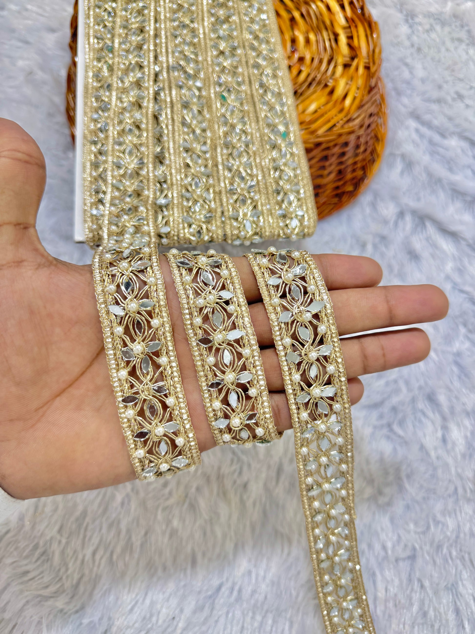 - Width: 2 inches – Elegant cutwork design combined with real mirror embellishments for a luxurious look.