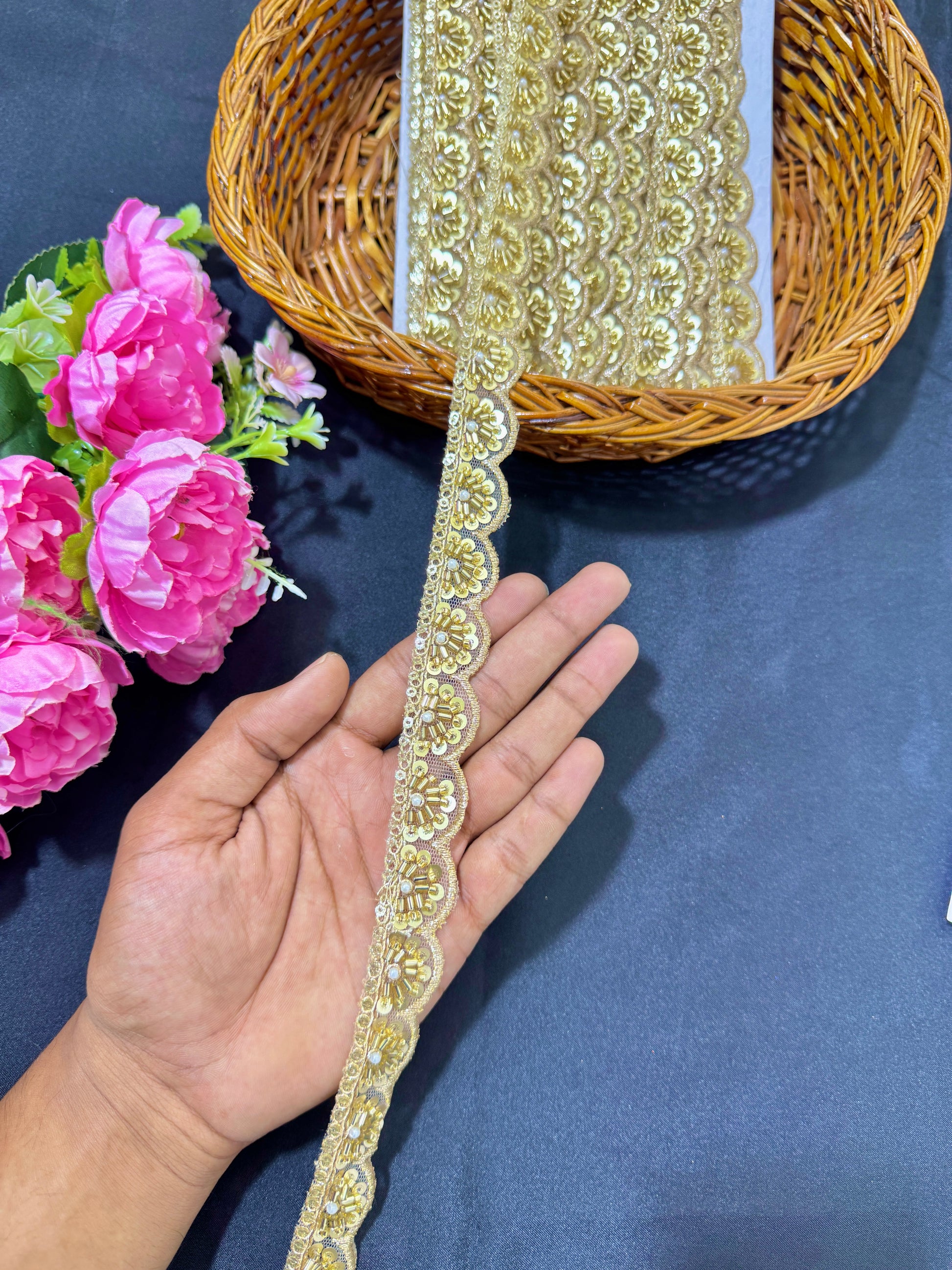 Exclusive Katdana Maggam Work with sequins Saree Lace border – 9 Meters, 1.5 Inch Embroidered Border for Sarees, Lehengas & Dupattas