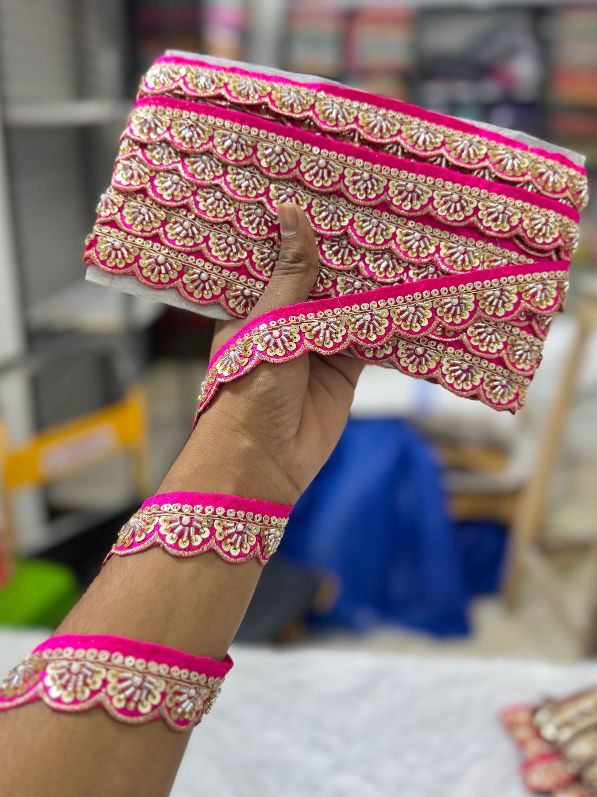 Usage: Dupattas, Sarees, Lehenga Borders, Blouses, Kurtis, Gowns & Craft Projects