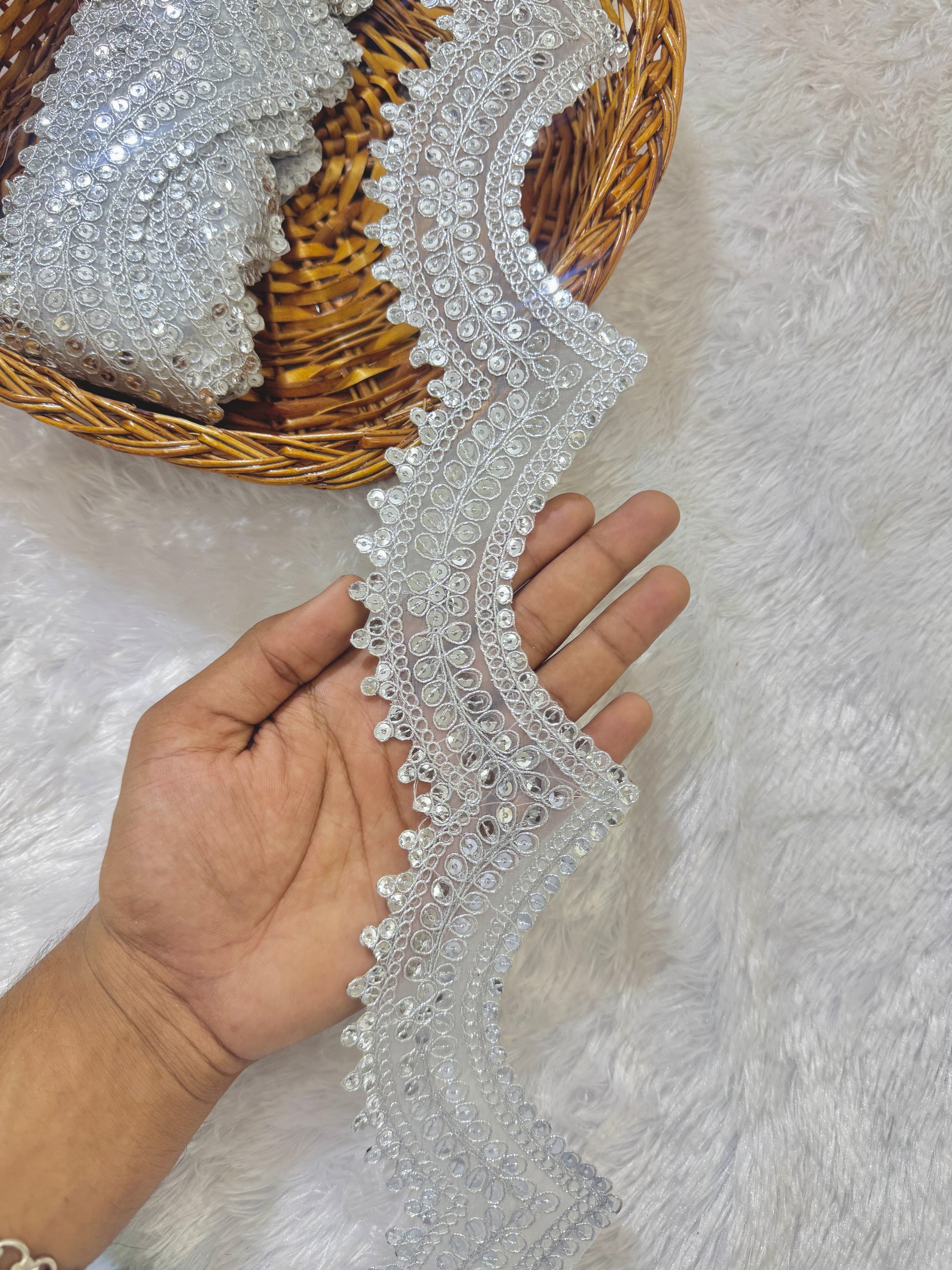 🧵 Material: Zari thread with mirror sequin embroidery