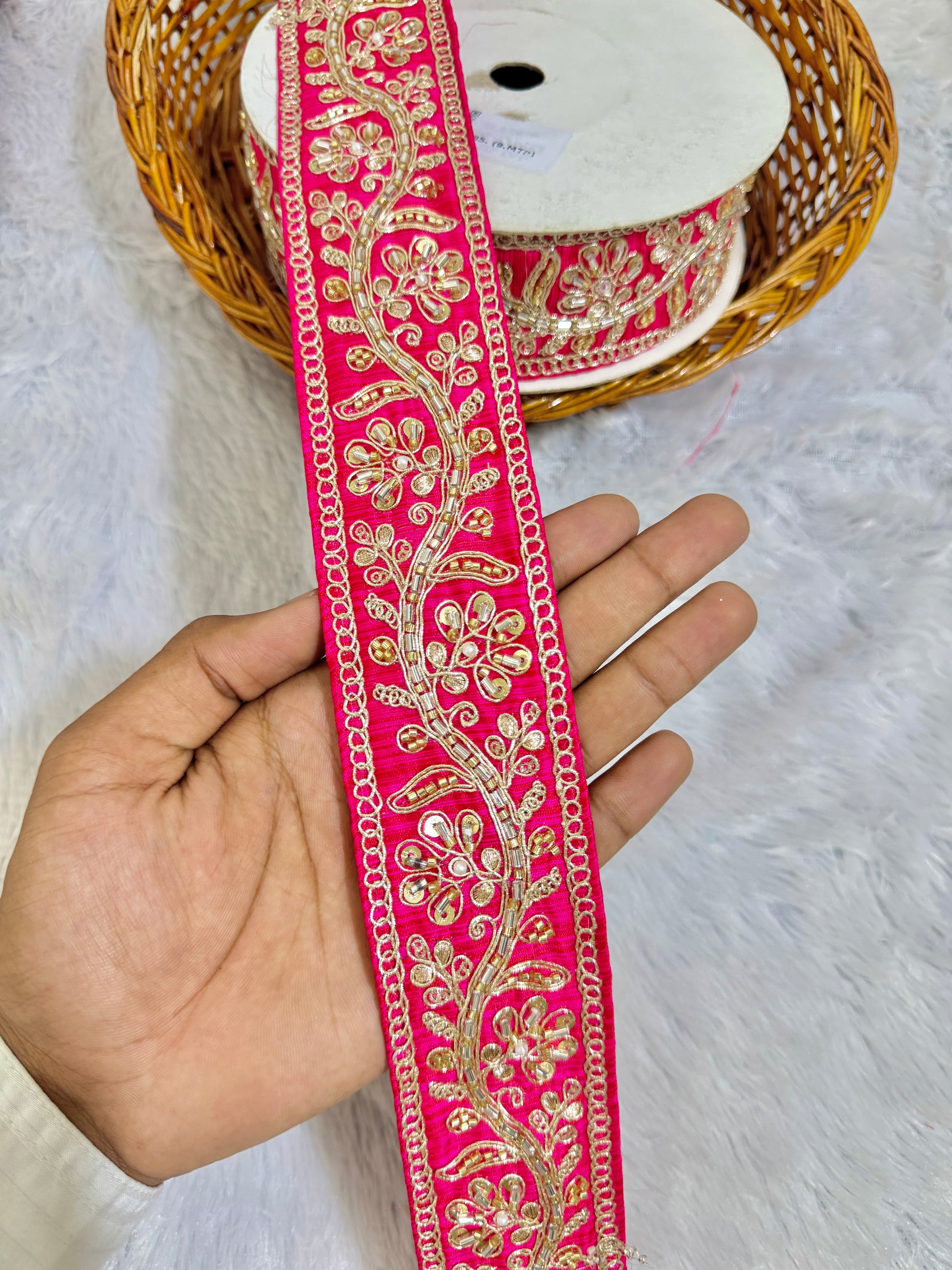 hand made cutdana lace border - peremium quality intricate embellishments for saare , lehengas bridal couture and luxury home decor pink