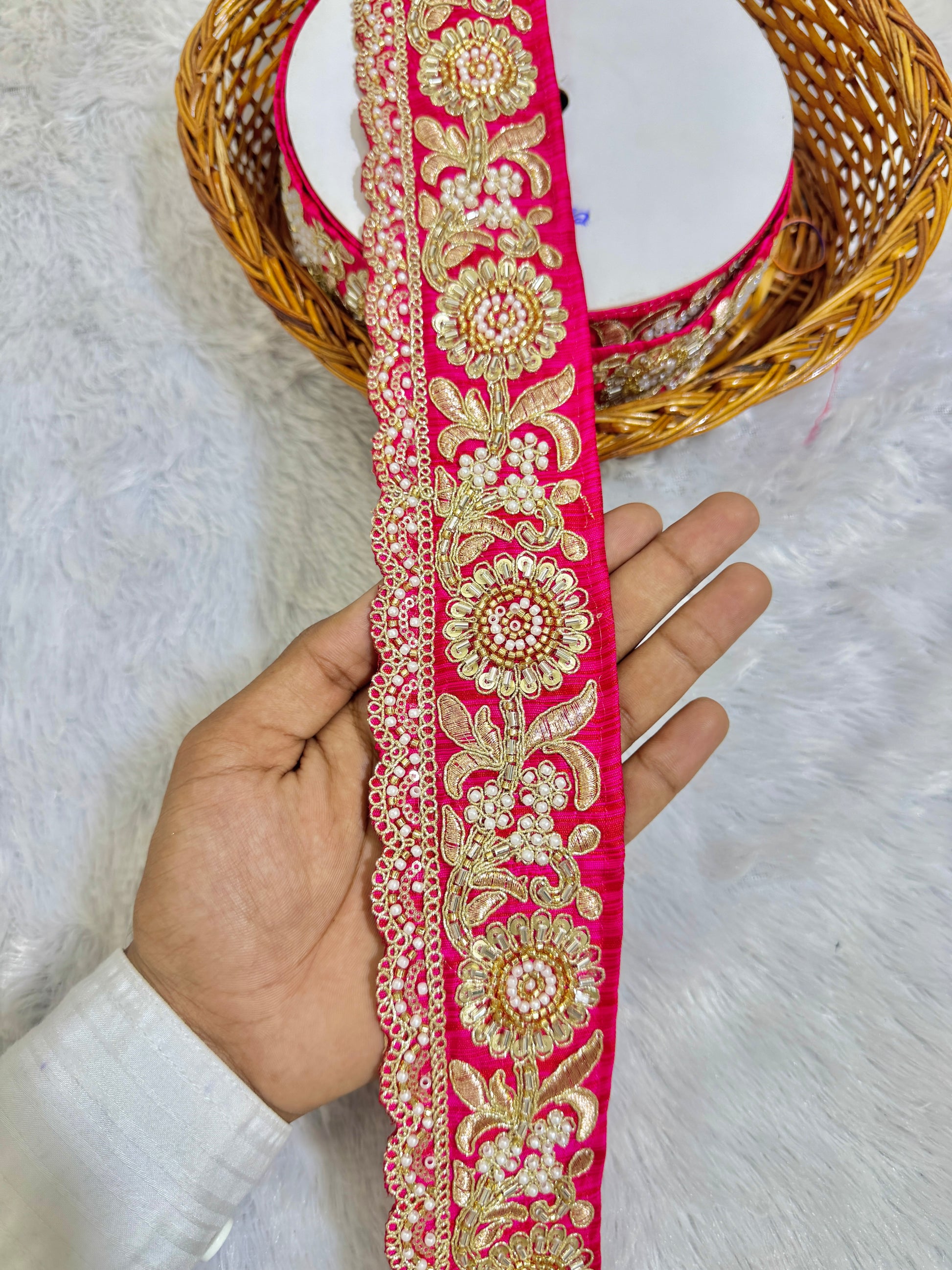 hand made cutdana lace border - peremium quality intricate embellishments for saare , lehengas bridal couture and luxury home decor pink pack of 9 meter