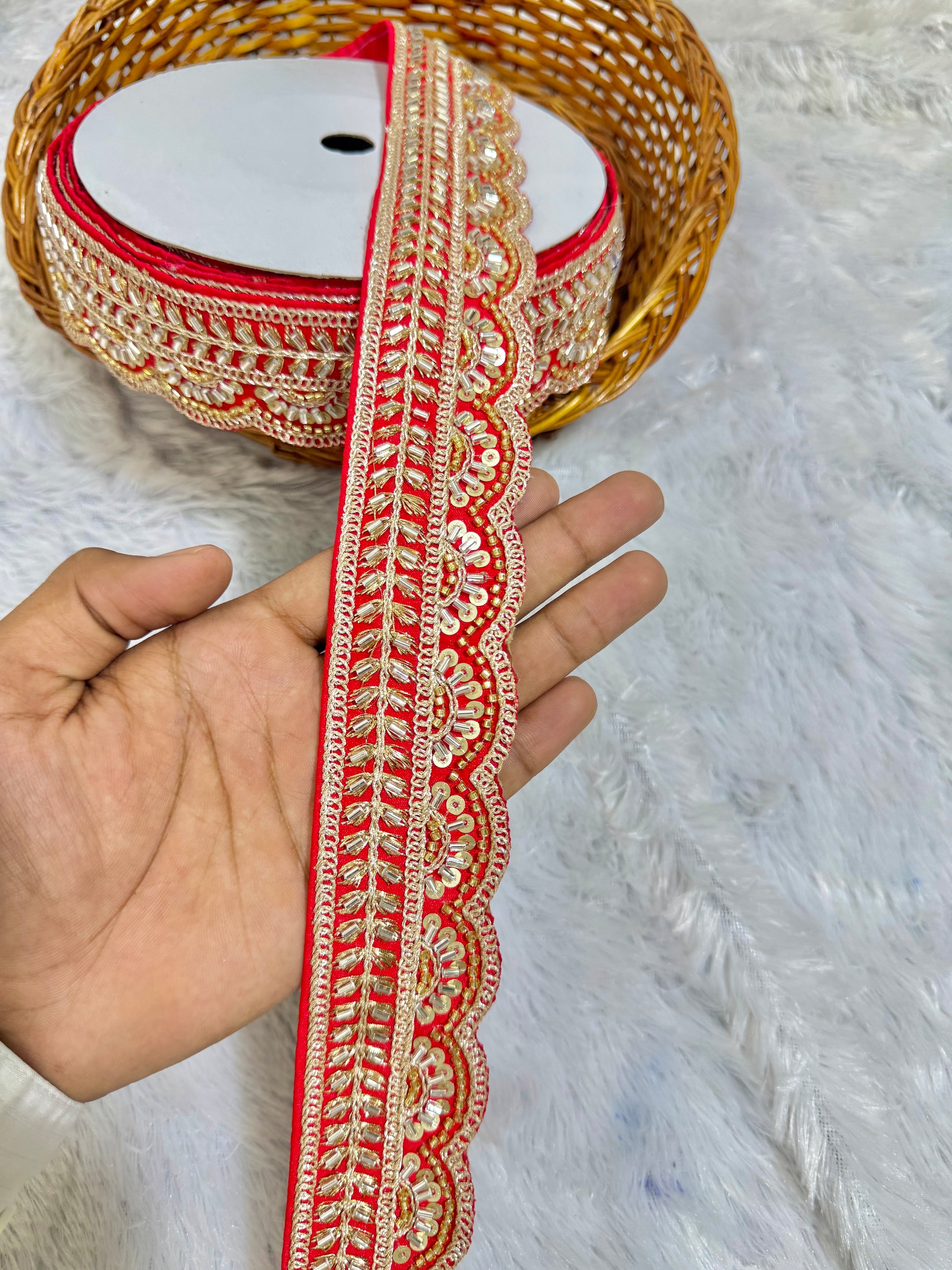 hand made cutdana lace border - peremium quality intricate embellishments for saare , lehengas bridal couture and luxury home decor red pack of 9 meter