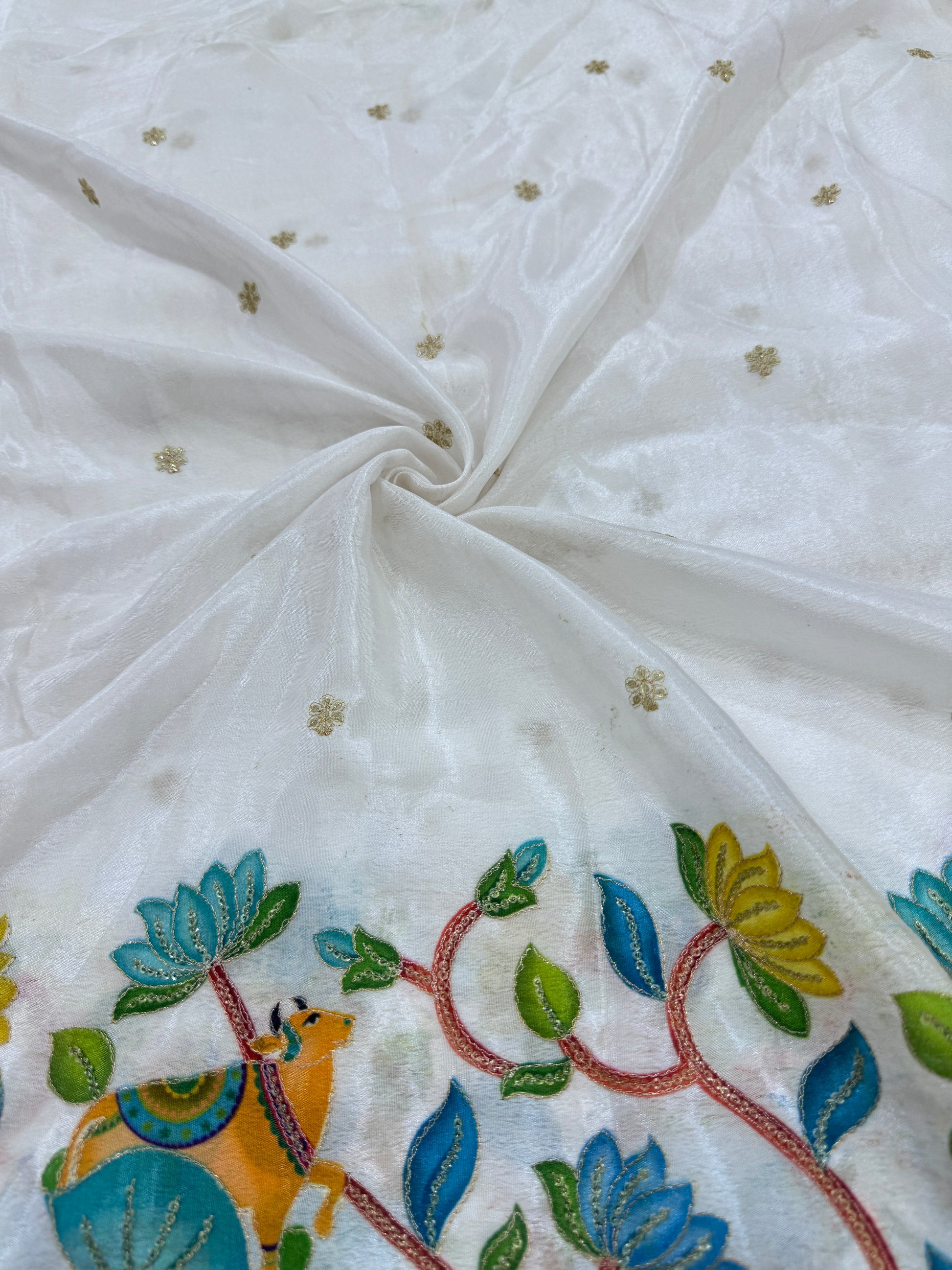 Kalamkari Cow Design Double Shaded Colour Chenon Fabric 44 Inch Width