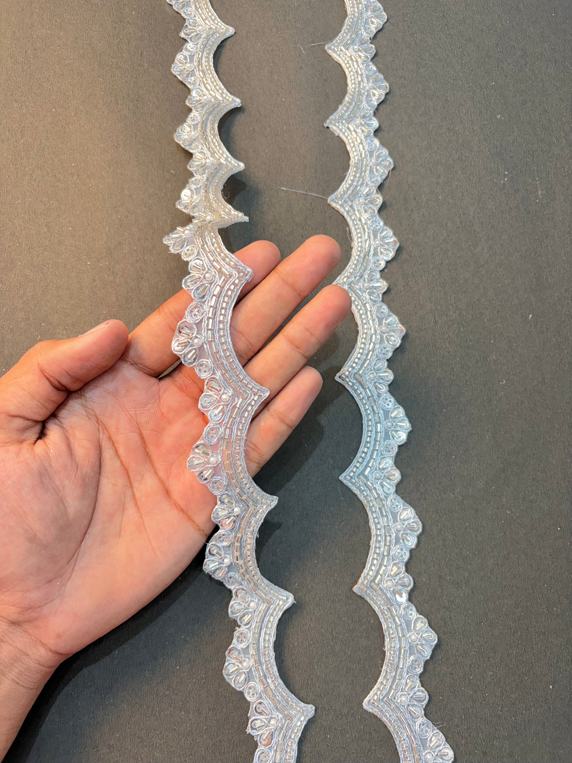 Enhance the beauty of your ethnic and bridal outfits with this Golden Scallop Zari Pearl Embroidery Lace Border.