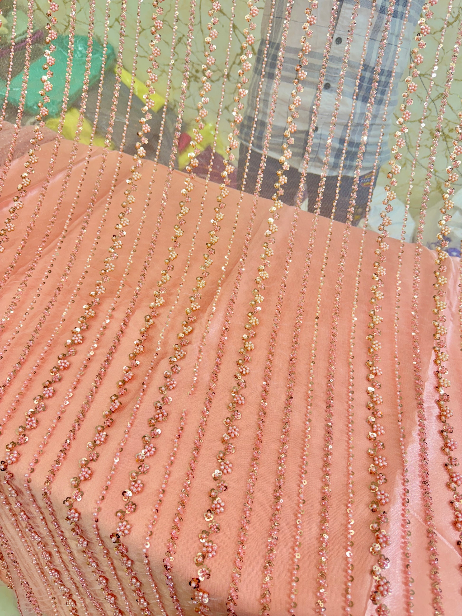 NET IMPORTED HANDWORK NET EMBROIDERY FABRIC 54 INCH WIDTH PEACH