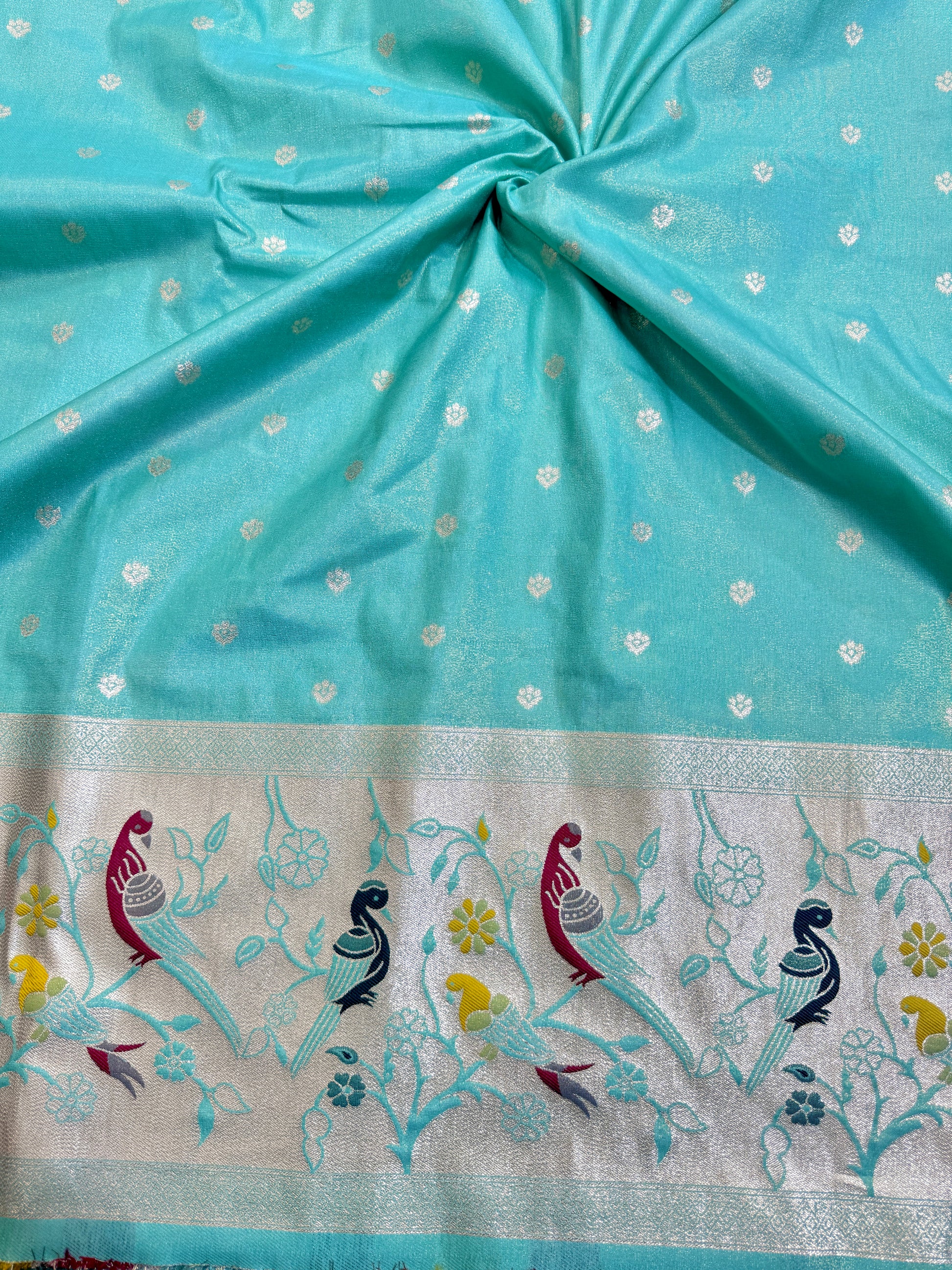 Paitanick Desing border with tissu fabric 44-45 width sky blue
