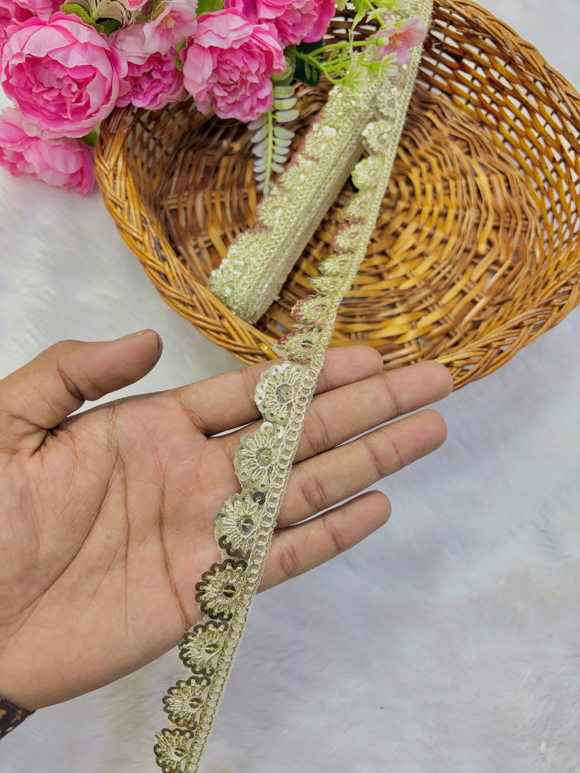 Pastel Bloom Sequin Embroidered SMALL LACE Lace Border Sare ,Lehenga, Anarkali, pack of 9 meter cutwork PANI COLOURgold