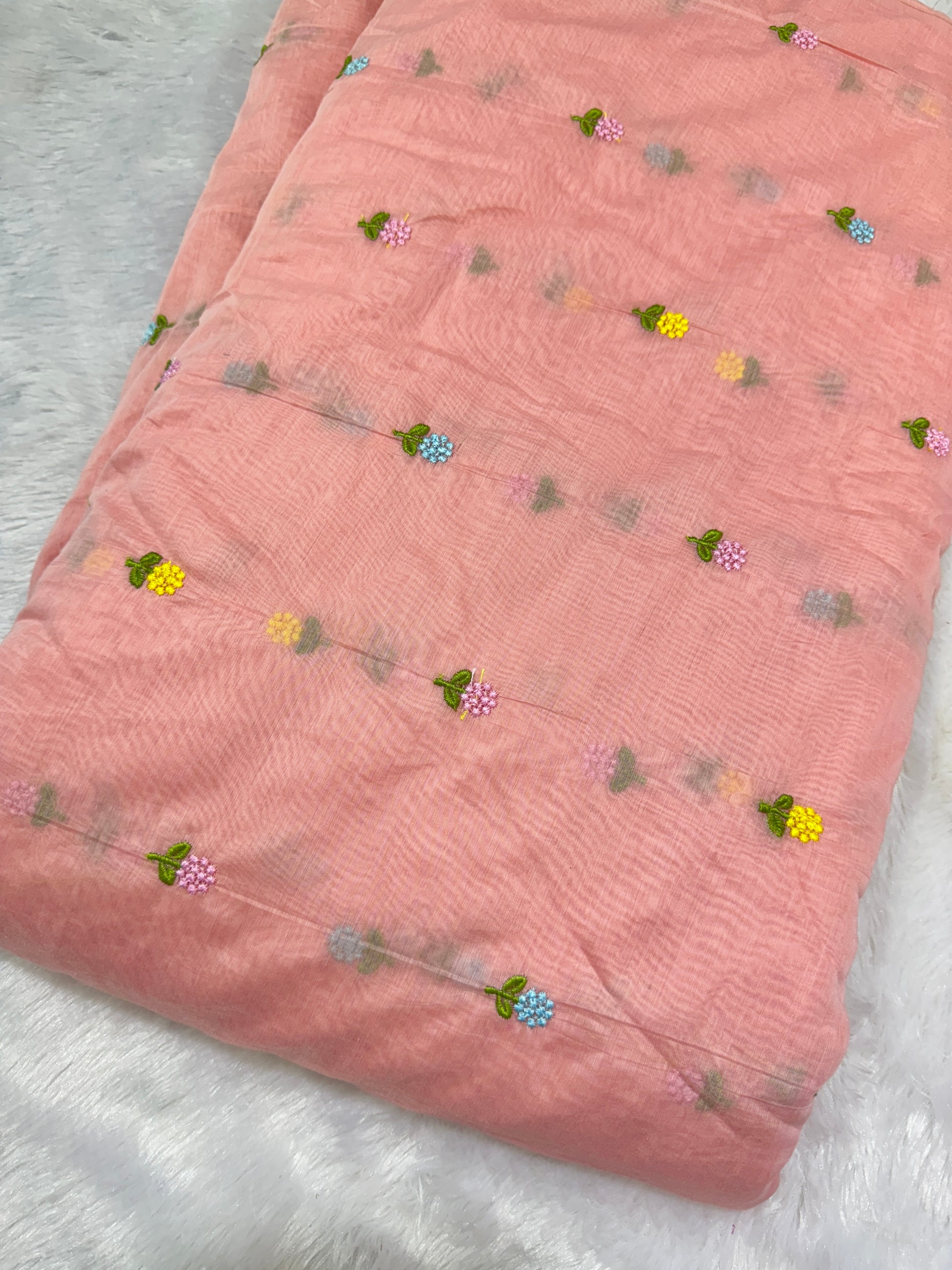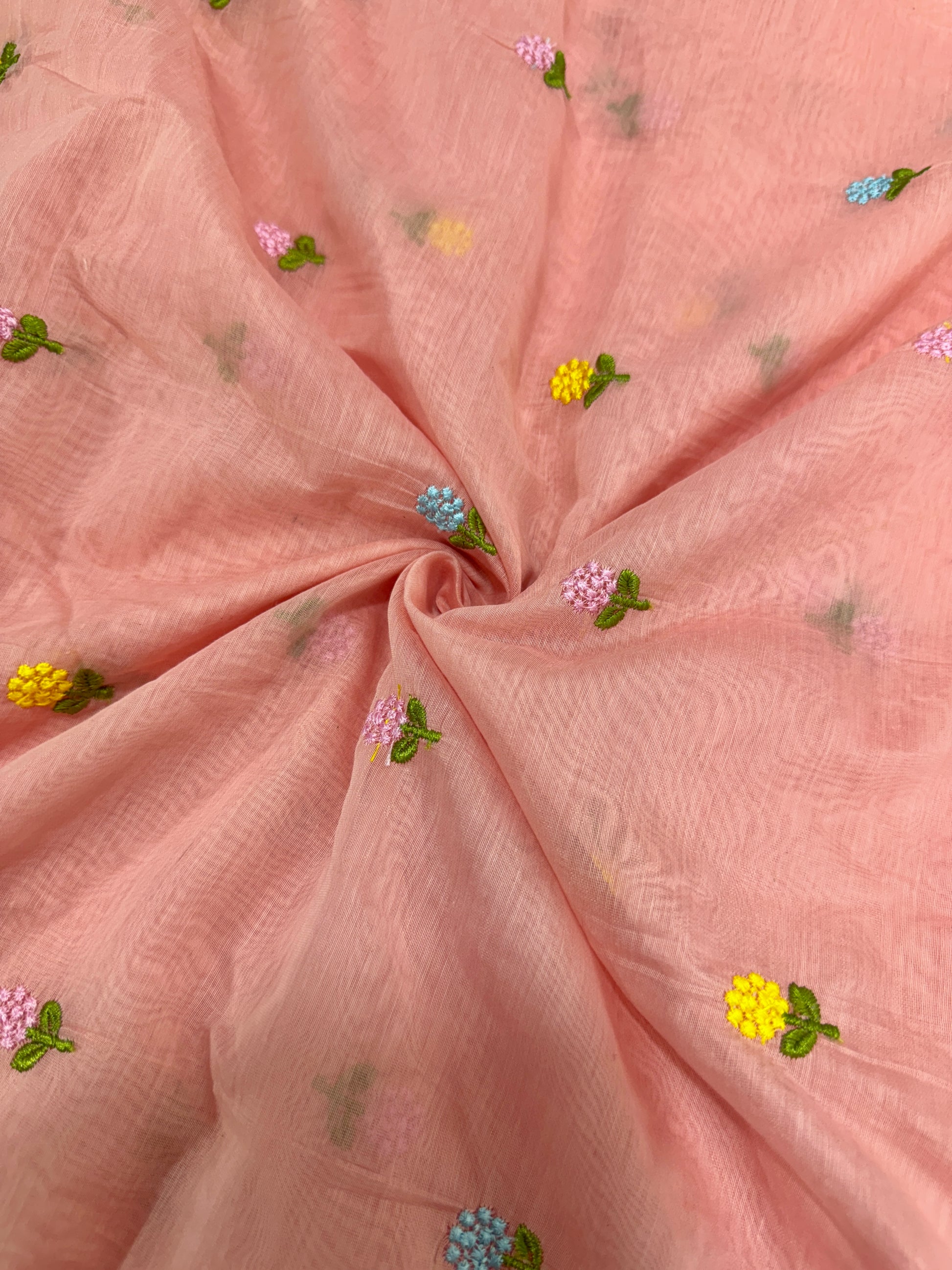 peach flower 🌼 💕Embroidered mal cotton Floral Fabric 44width