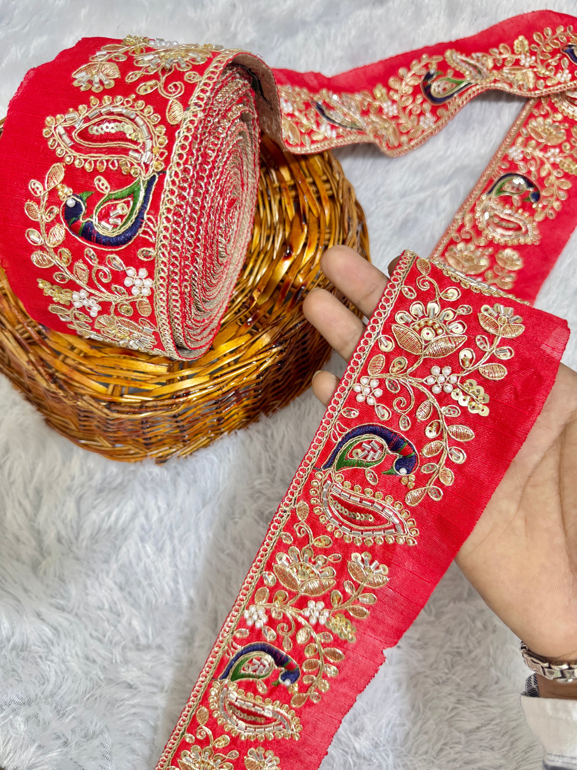 Our peacock handwork lace is a perfect blend of elegance and vibrant artistry - ideal for adding a festive touch to any outfit.