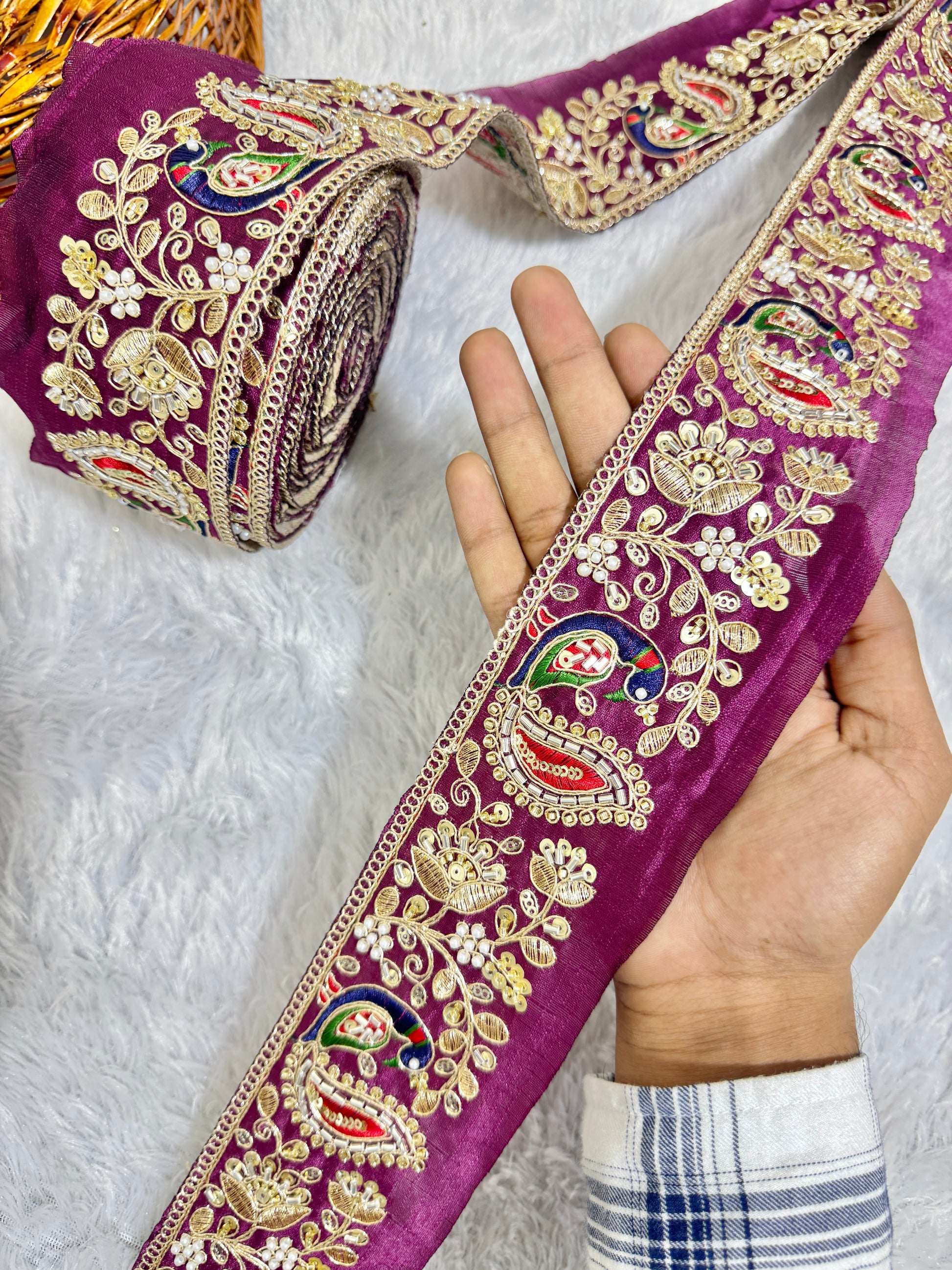 Our peacock handwork lace is a perfect blend of elegance and vibrant artistry - ideal for adding a festive touch to any outfit.