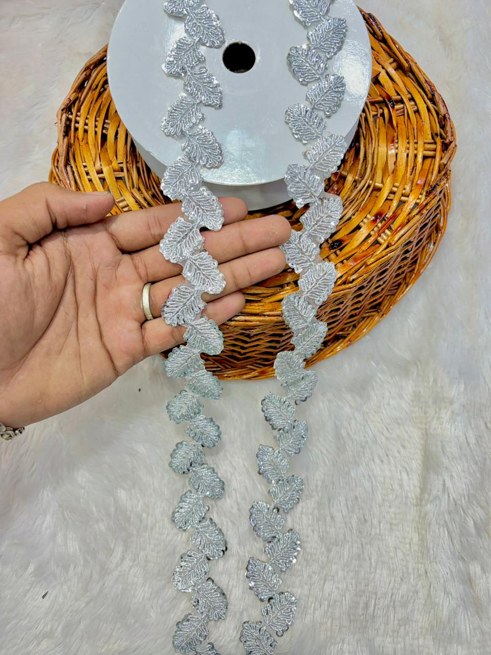 The finely detailed leaf design gives a luxurious and festive look, making it perfect for weddings, bridal wear, festive outfits, and designer creations. Its elegant shine and neat finish make it ideal for both traditional and modern styling.