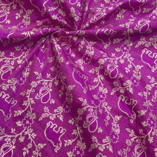 Premium MAGENTA Silk Brocade Banarasi Fabric with Elephant & Floral Motifs 44INCH WIDTH