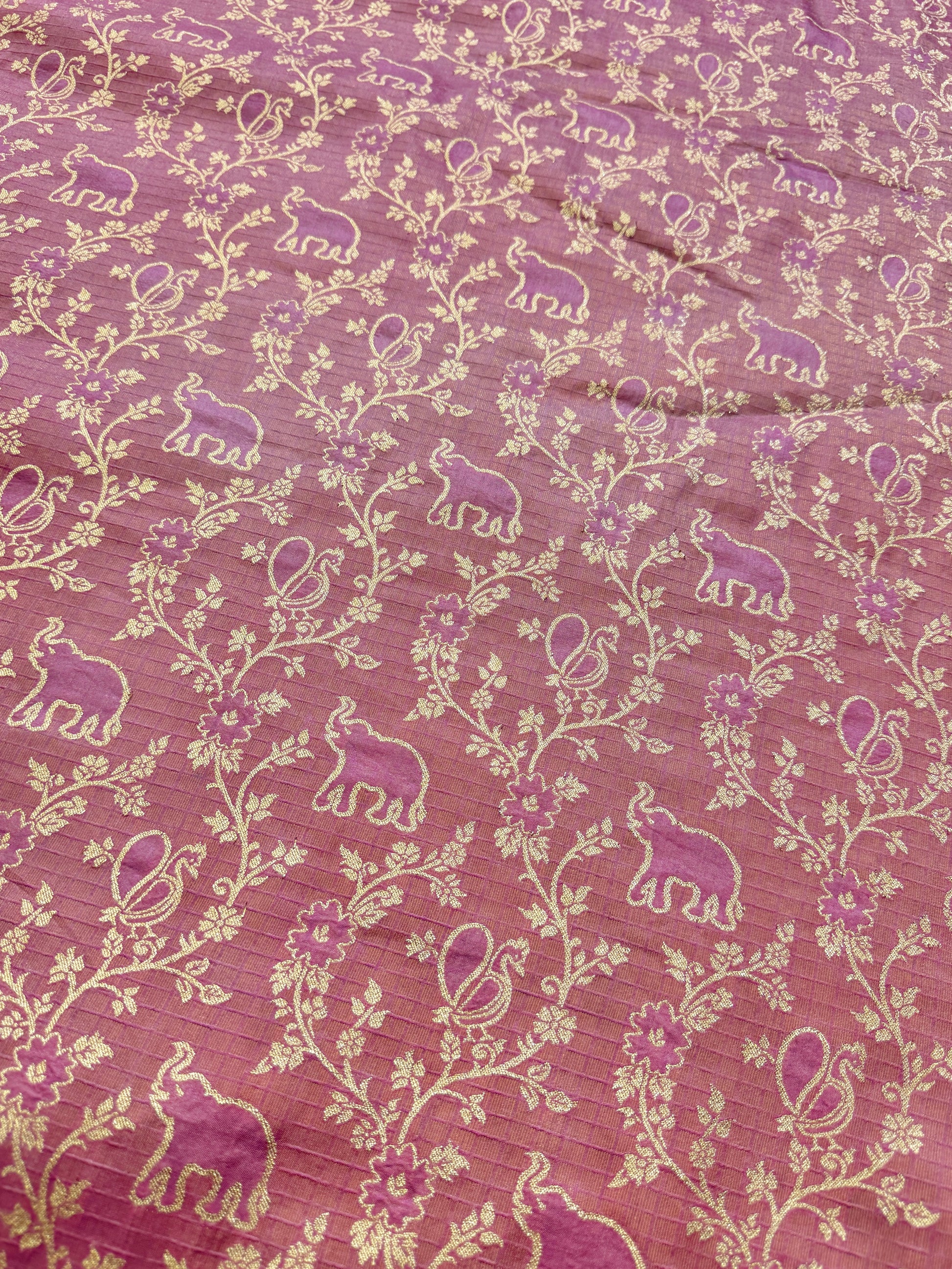 Premium Silk Brocade Banarasi Fabric with Elephant & Floral Motifs DUSTY ROSE 44INCH WIDTH