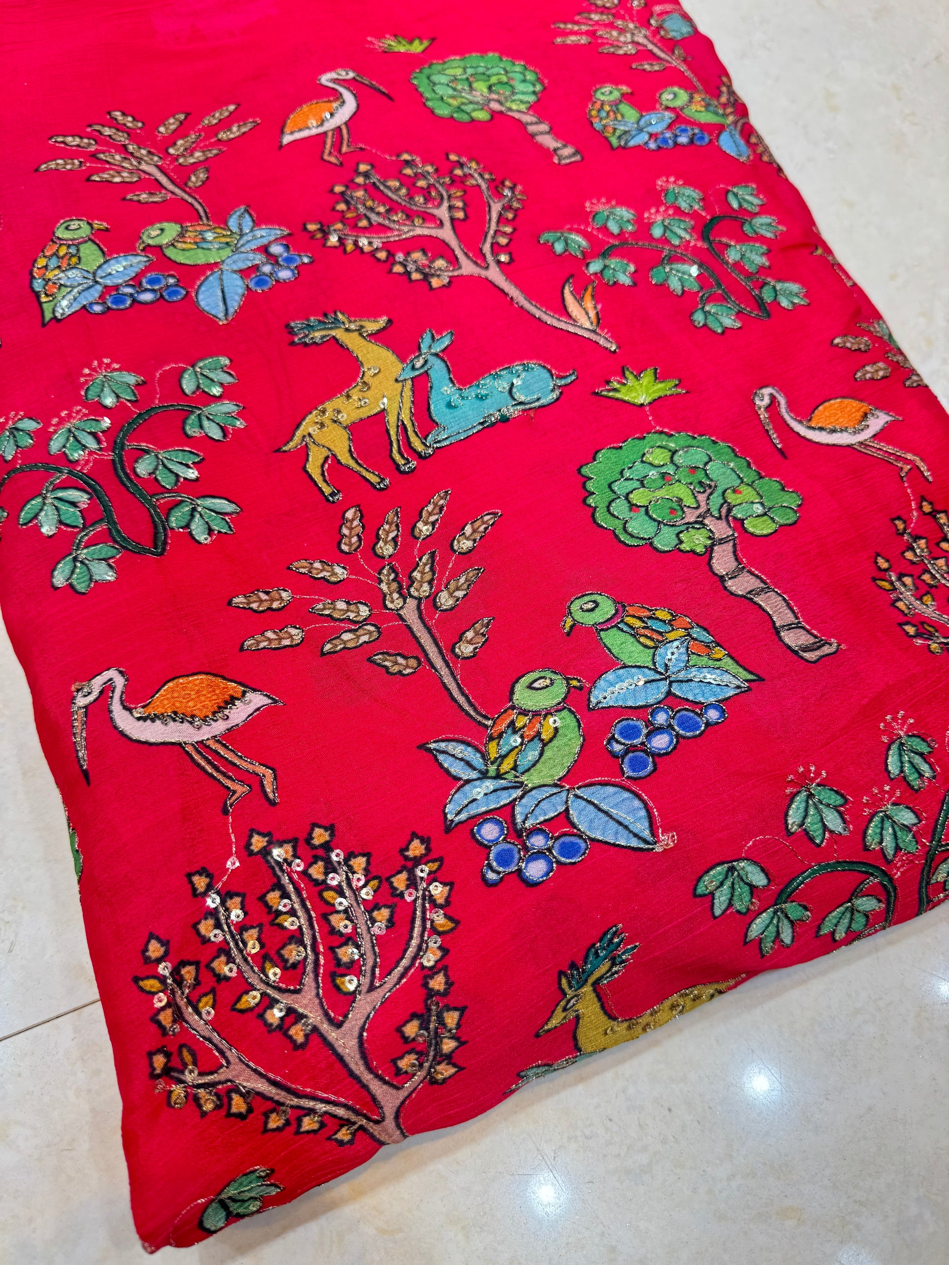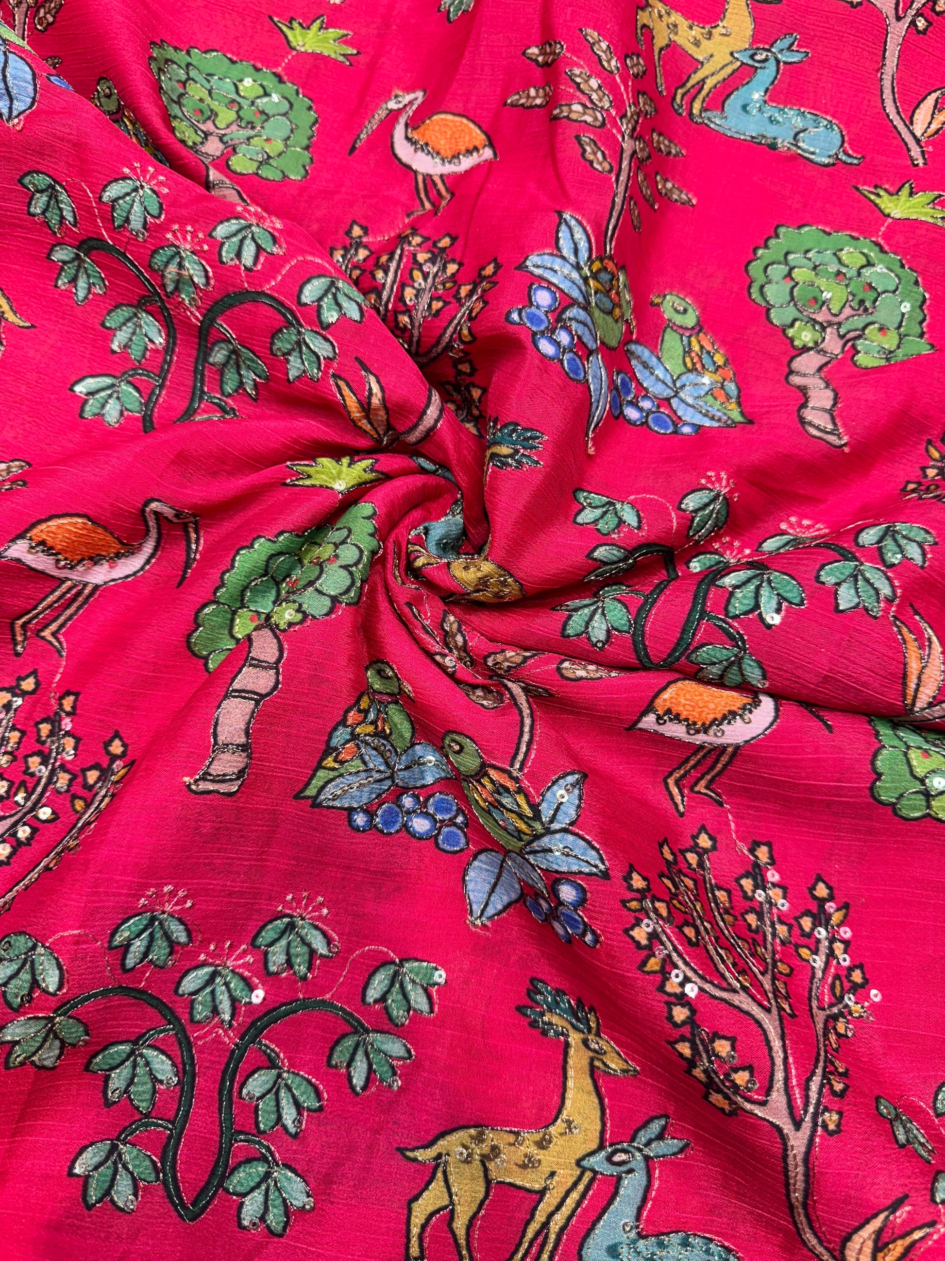 Crafted from high-quality fabric, this Pure All Over Pen Kalamkari with Position Work showcases intricate hand-drawn designs, ideal for creating premium clothing and elegant sarees. With a 45-inch width, it offers generous fabric span to bring traditional artistry into sophisticated, wearable forms. Perfect for those seeking authentic craftsmanship and distinctive style in their wardrobe.