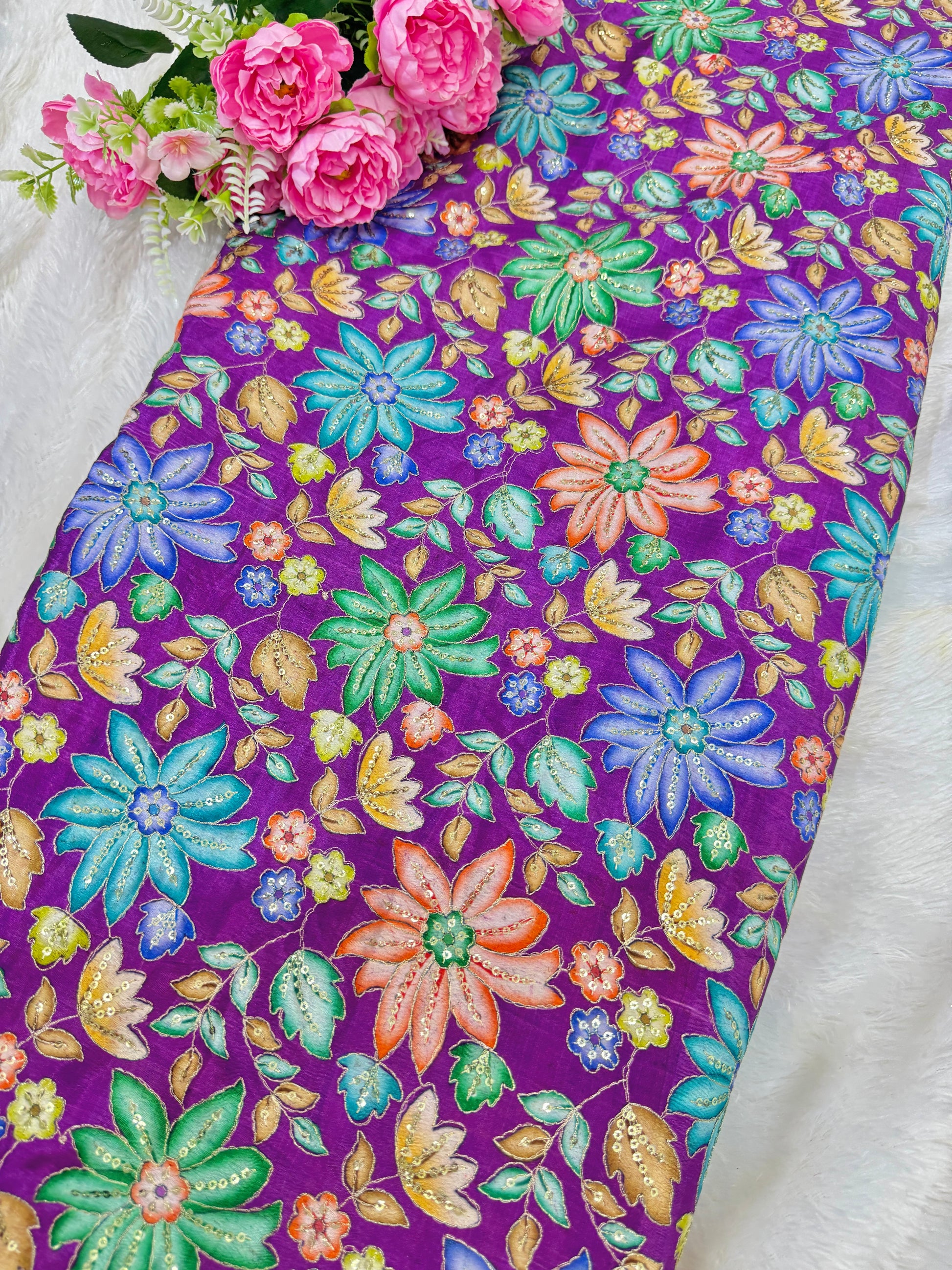 Pure chinon fabrics with multi flower 💐 44inch width lehanga , blouse , frock gown dress purple