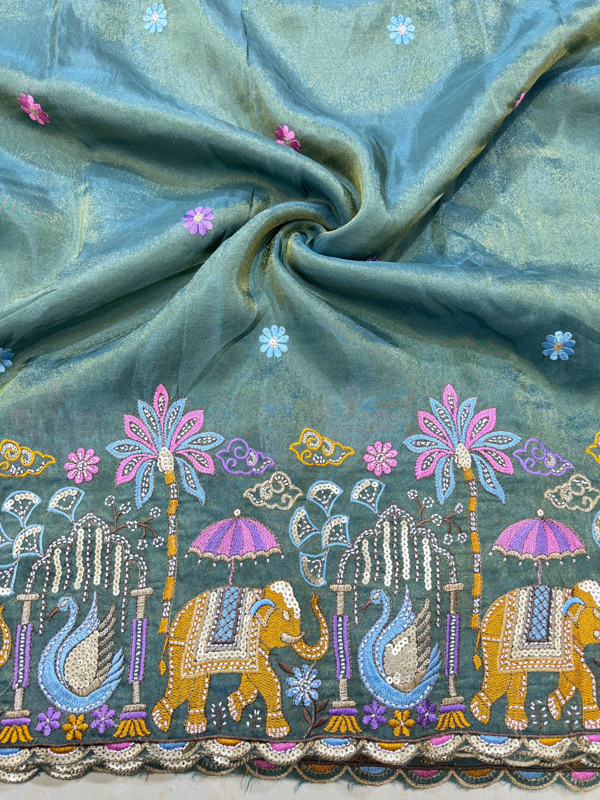 3. Embroidery Colors: The multi-color threadwork (elephants, swans, flowers) can be tailored to specific shade palettes.