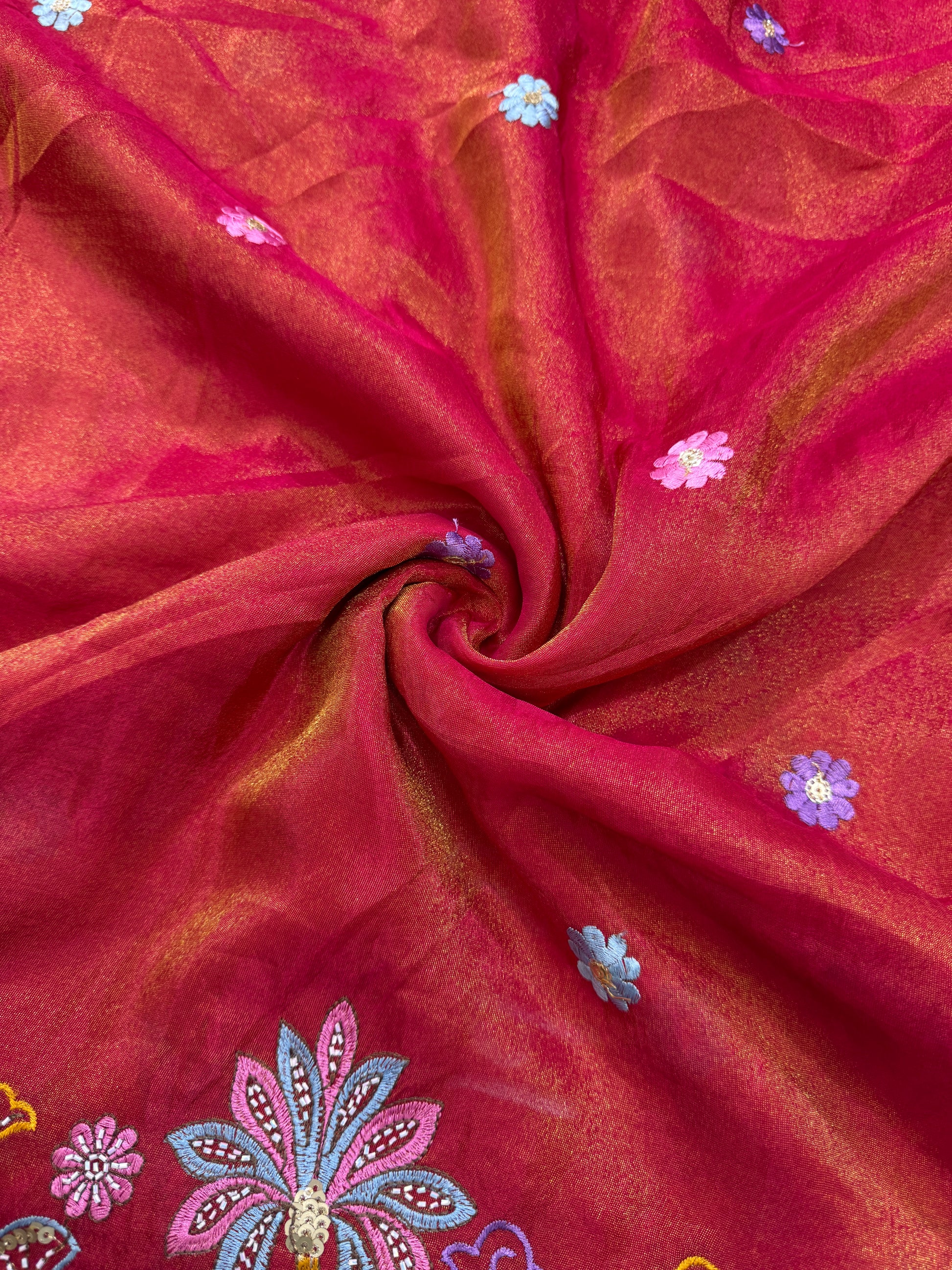 PURE TISSUE MULTI EMBRODERY DAAAMAN STYLE 44-45width RED