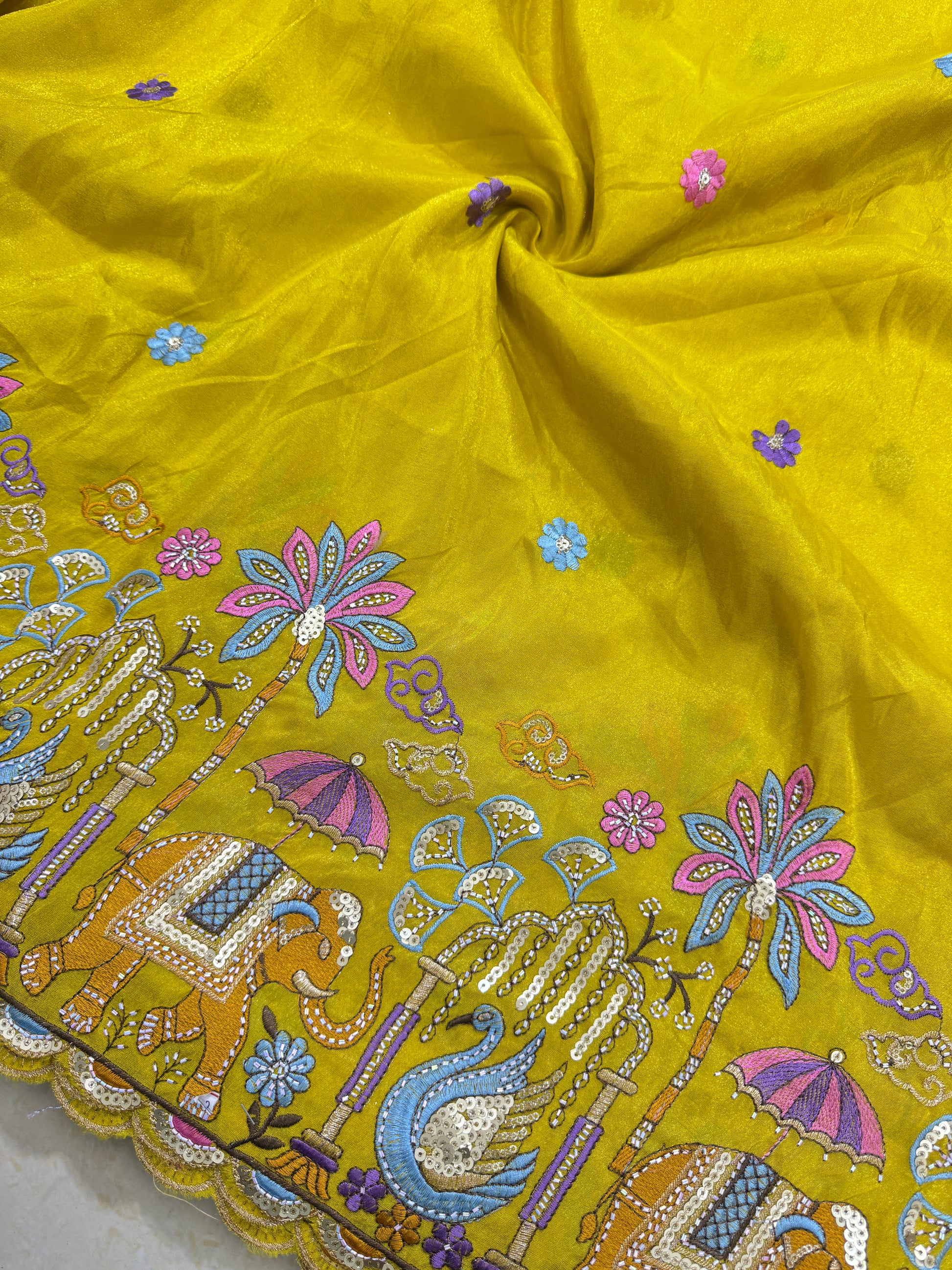 PURE TISSUE MULTI EMBRODERY DAAAMAN STYLE 44-45width YELLOW