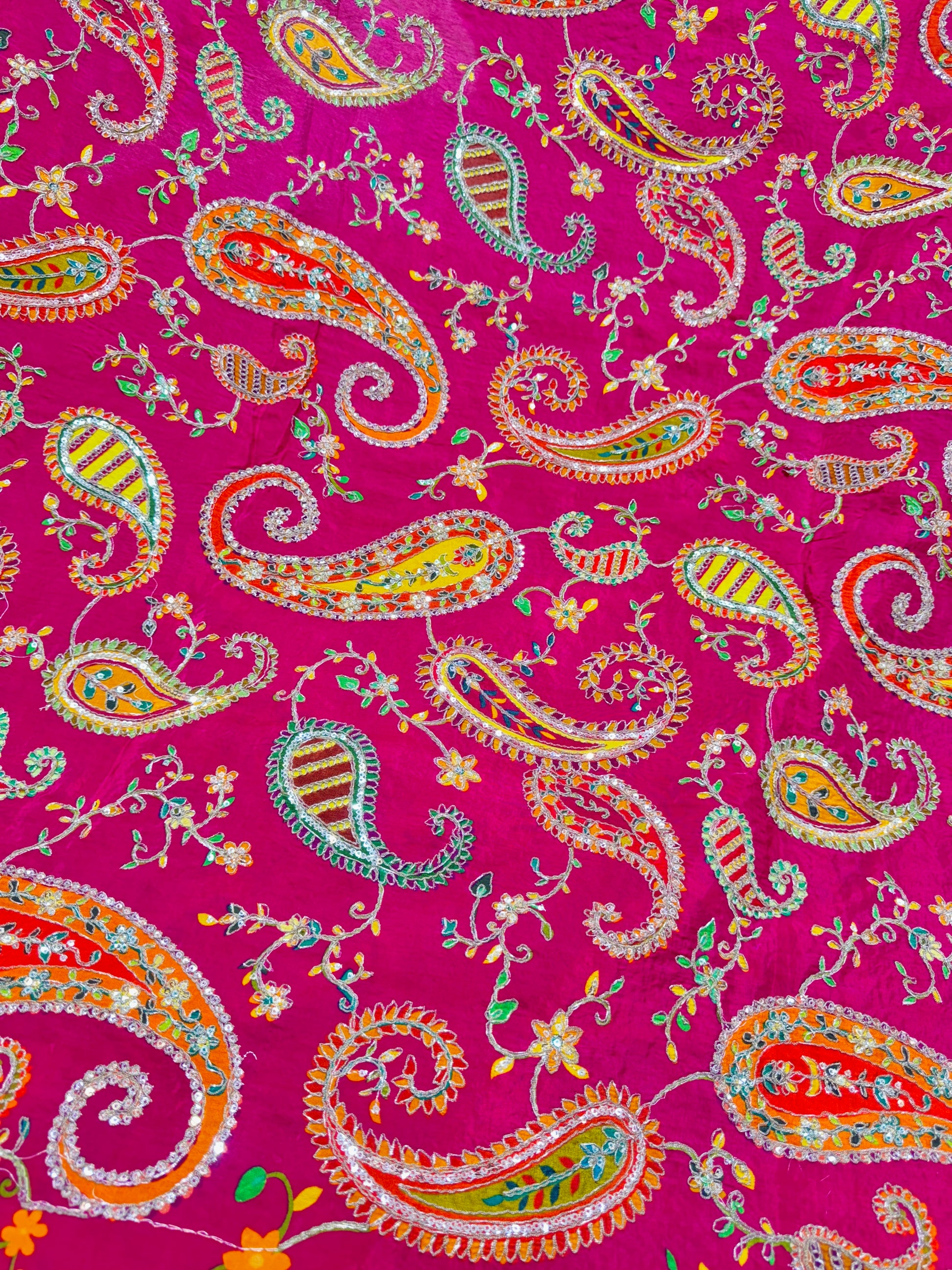 pure viscouse natural crape luxury embroidery 44inch widthRANI PINK