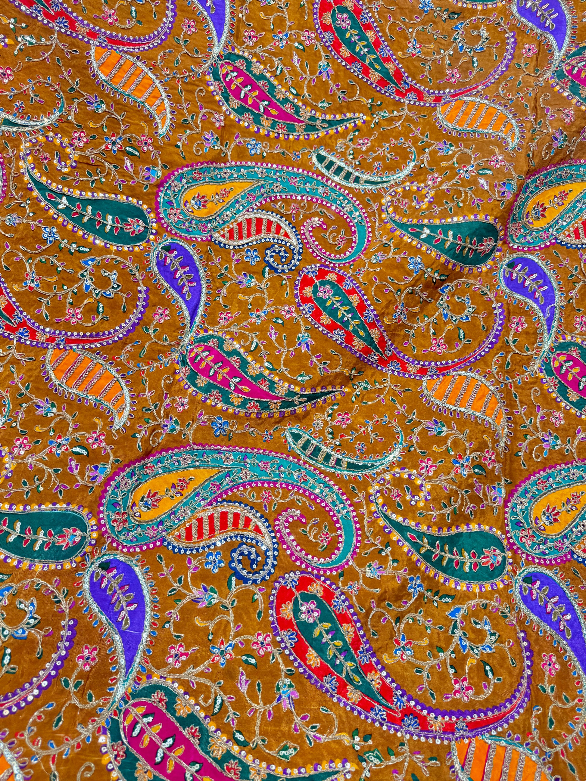 This 44 inch width fabric is perfect for creating stunning suits, lehngas, gowns, and coordination sets. The intricate