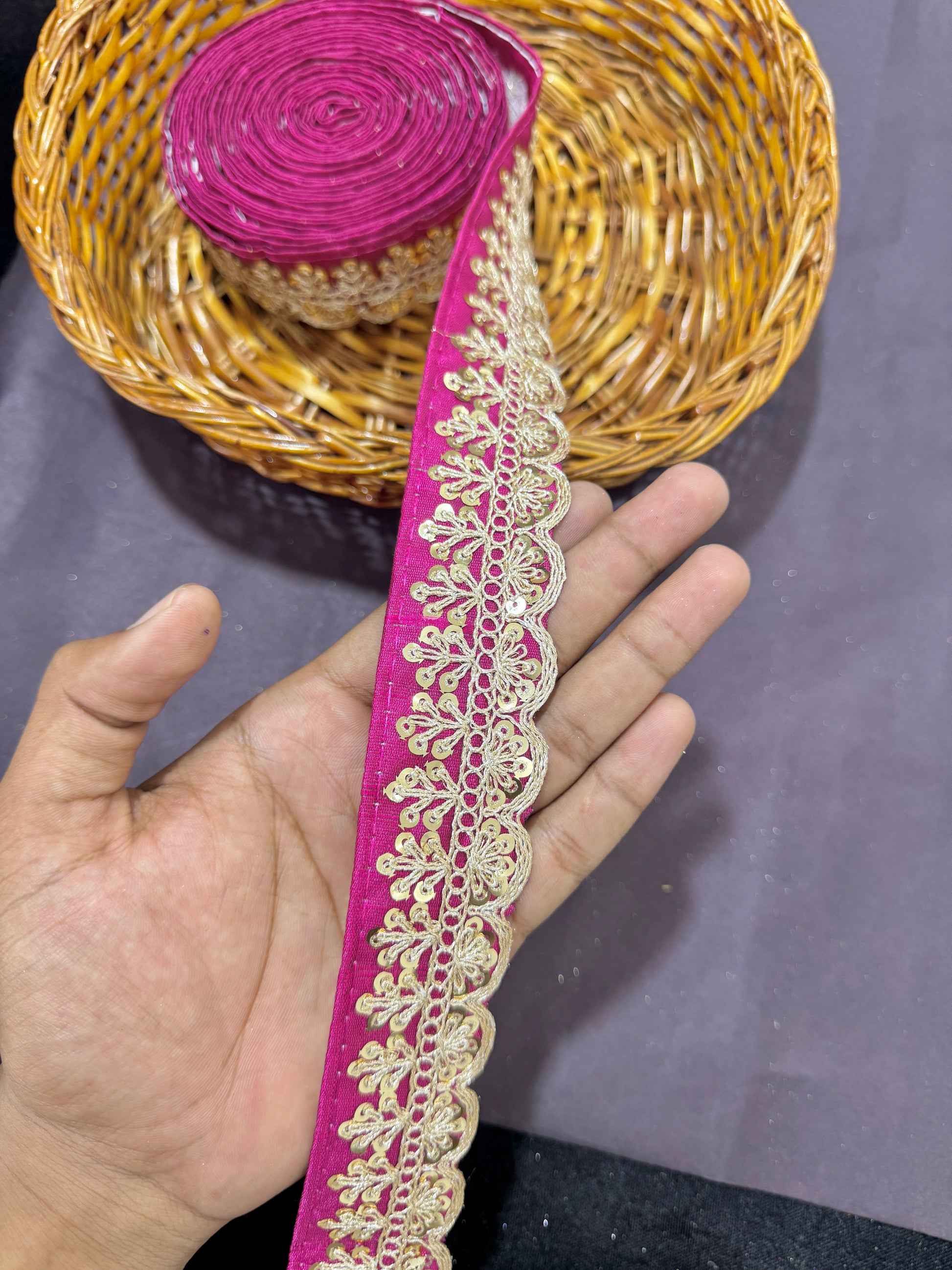 rawsilk fancy lace border with coding work sequence (pack of 9 meter) magenta pink