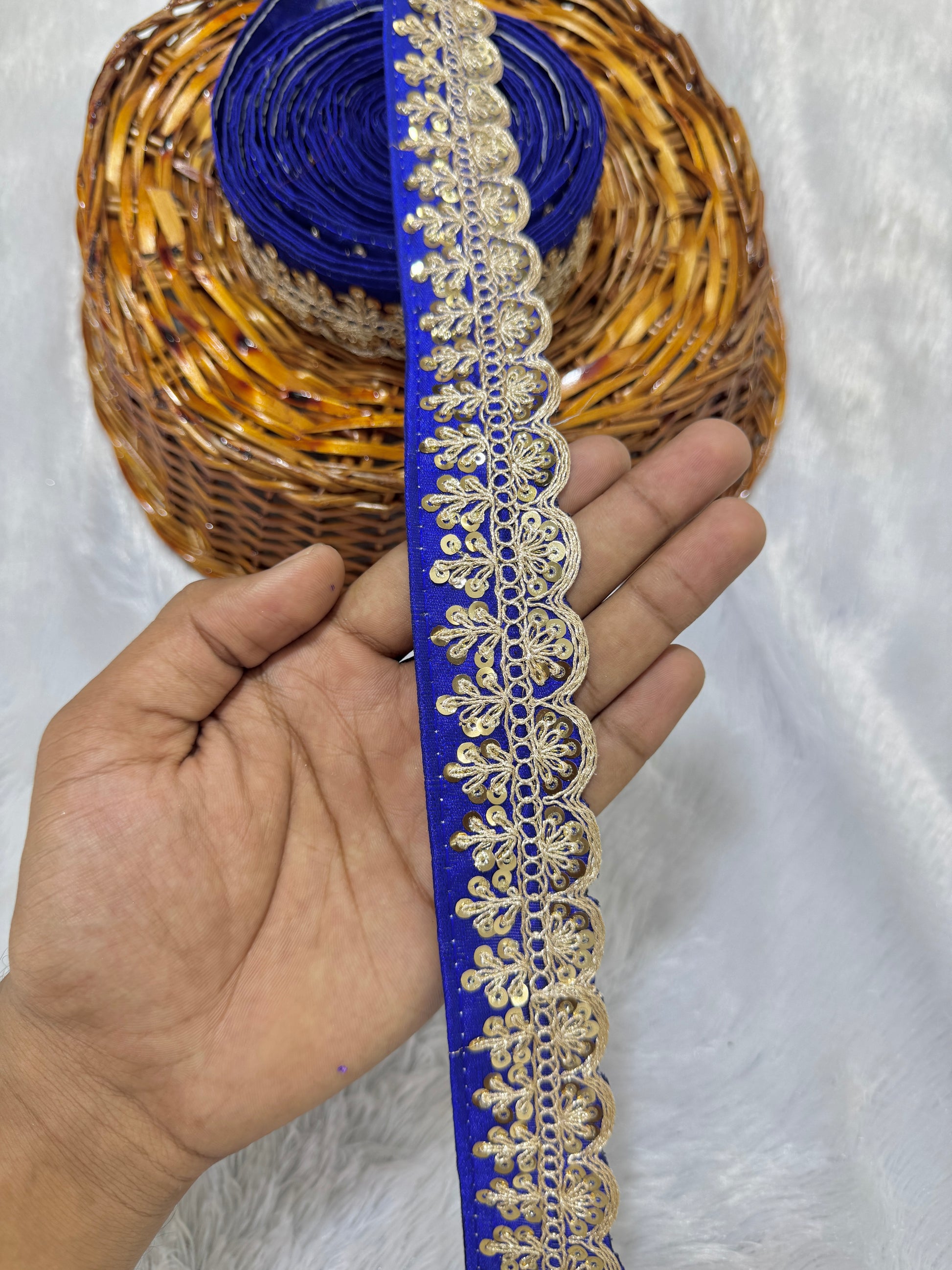 rawsilk fancy lace border with coding work sequence (pack of 9 meter) royal blue