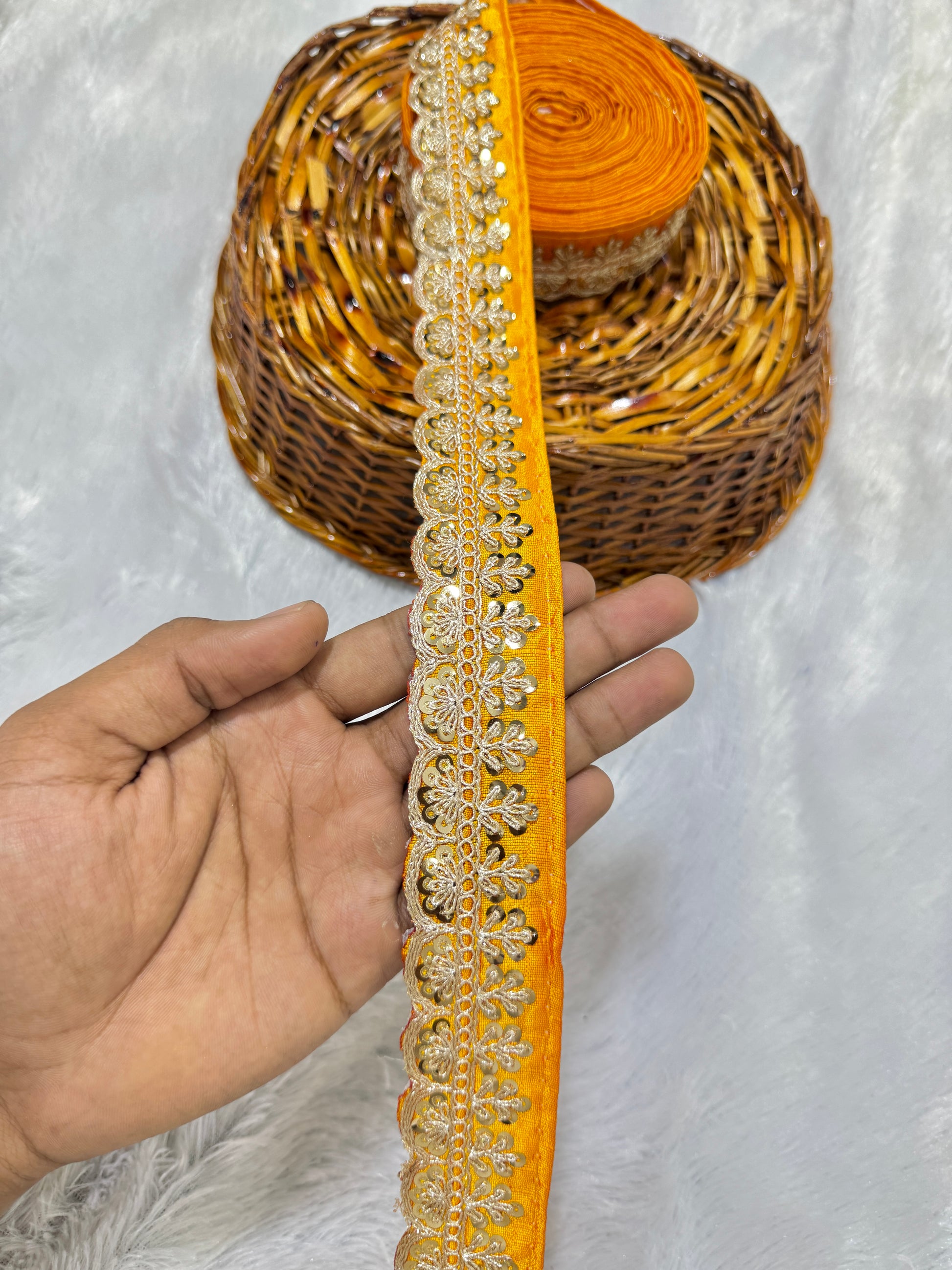 rawsilk fancy lace border with coding work sequence (pack of 9 meter)Bright Marigold Orange. 🟧🌼