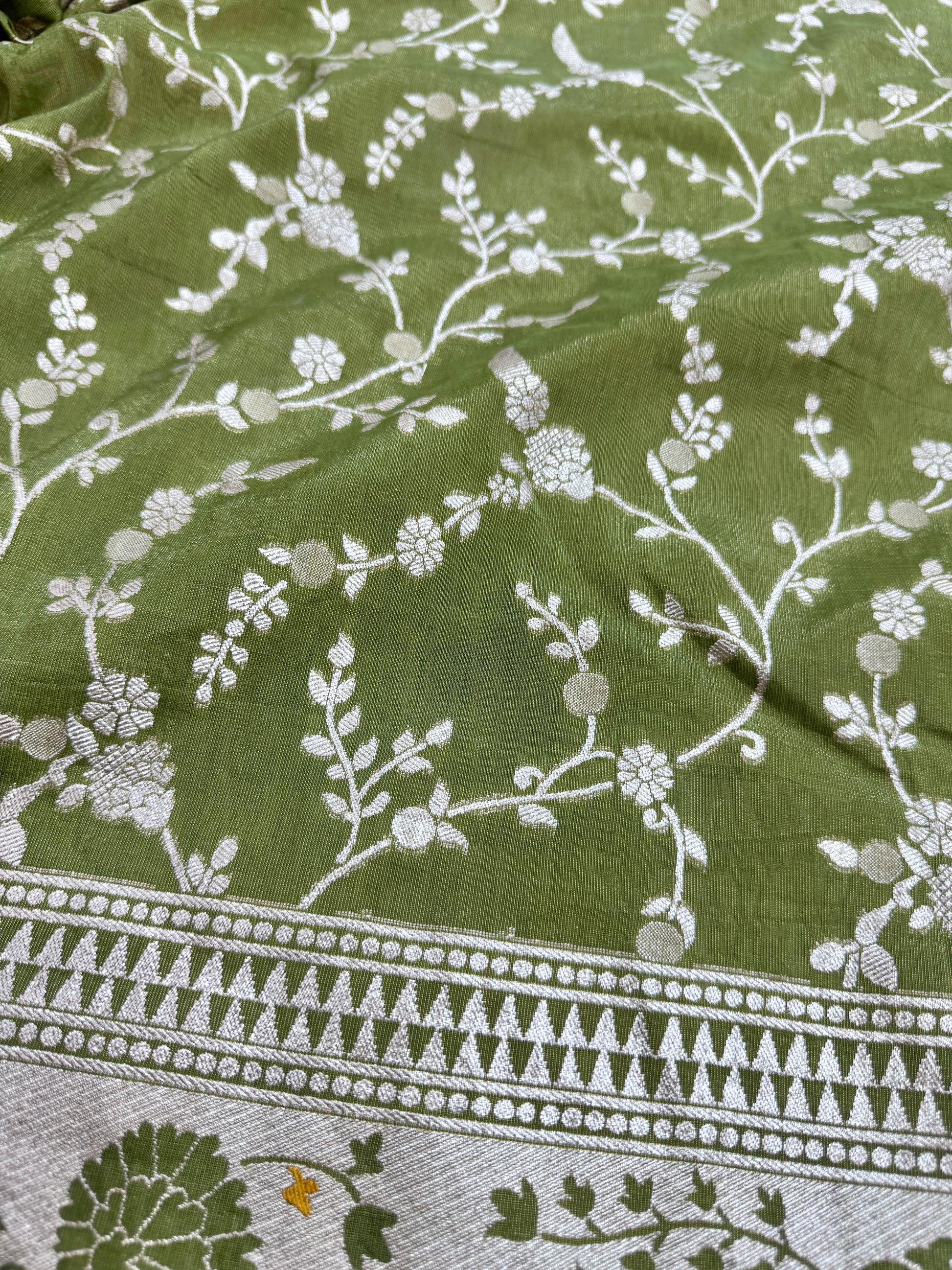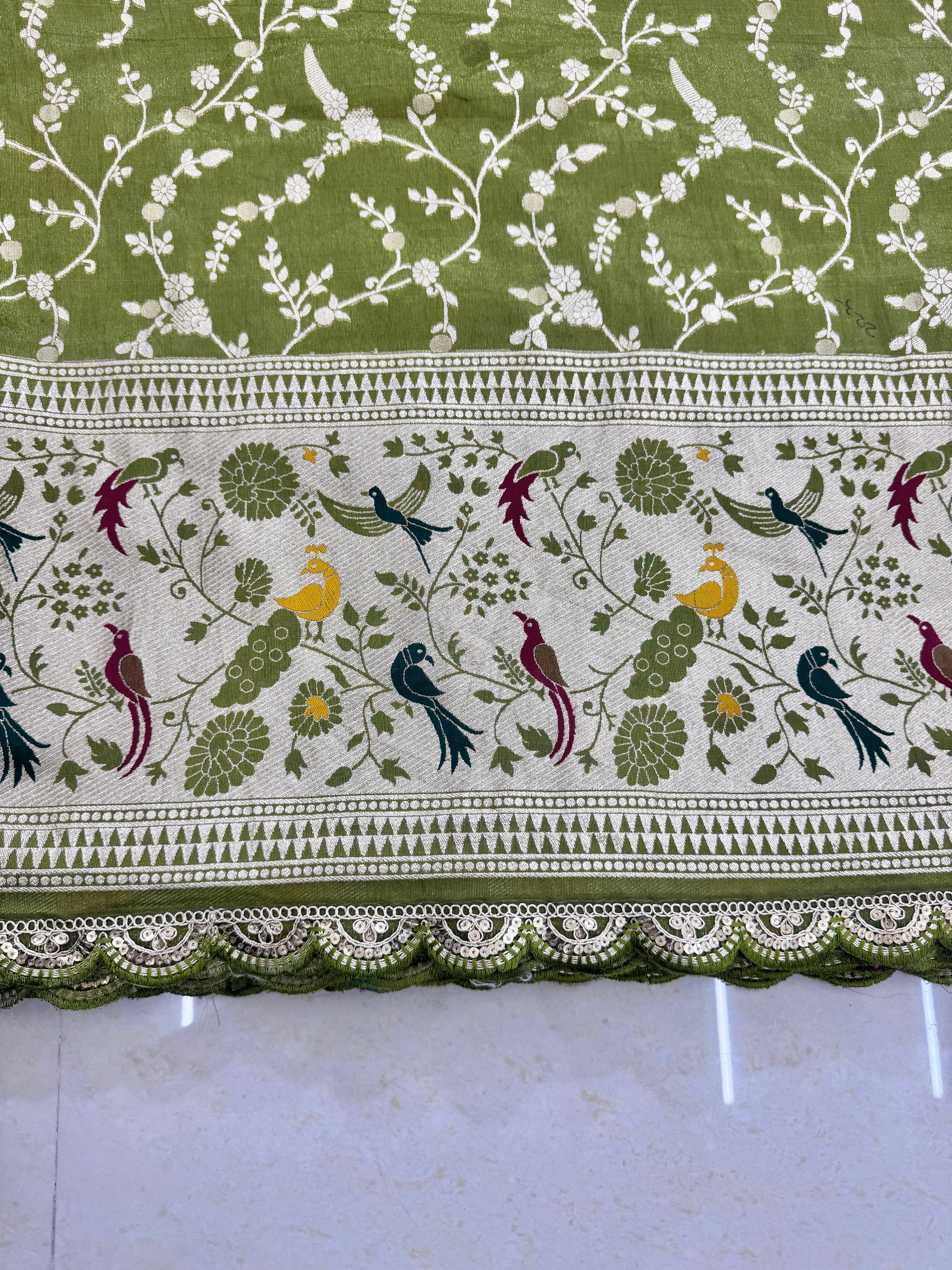 Tissu banarasi fabrics paitanick border with lace birds Desing 45-46 inch width