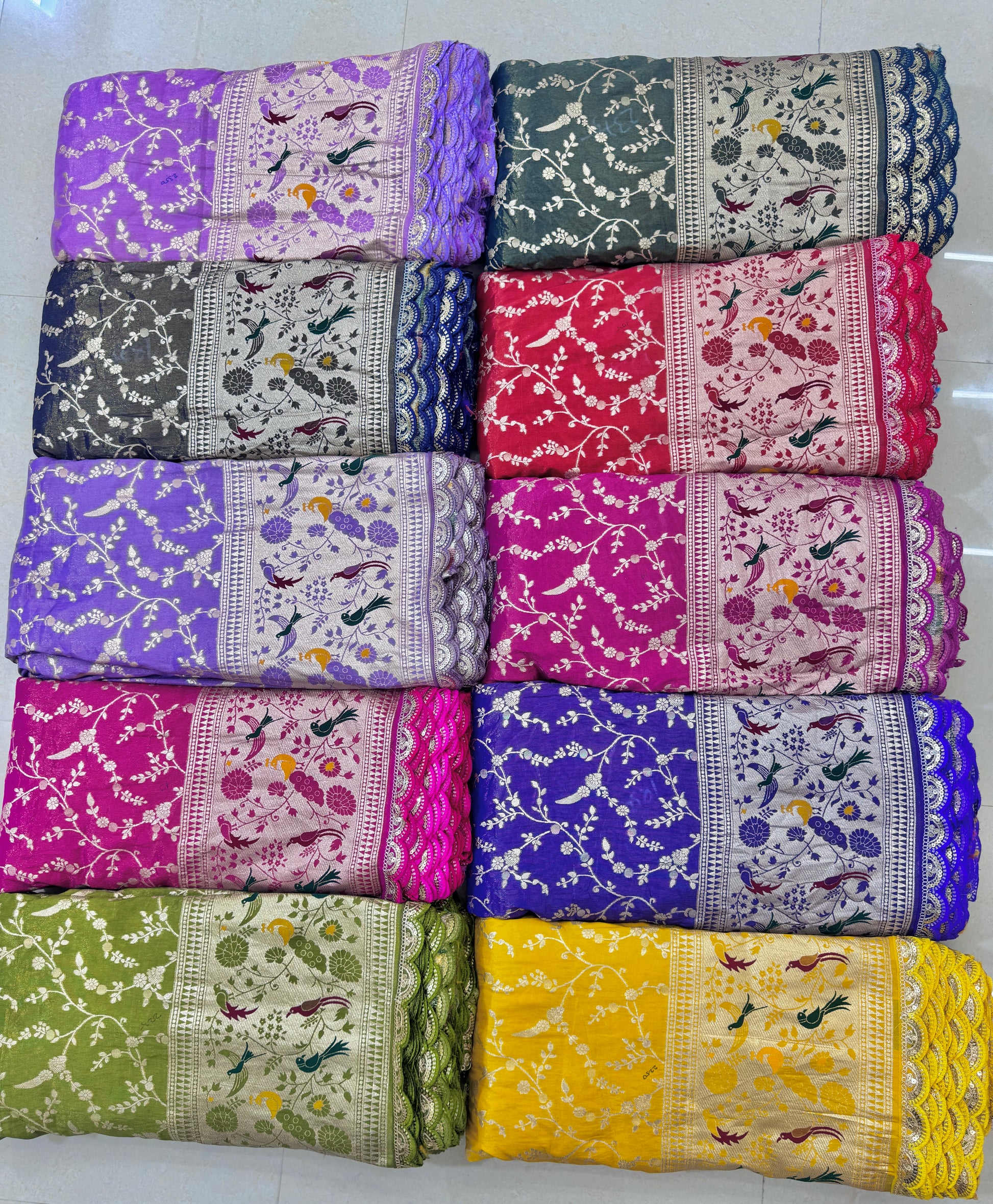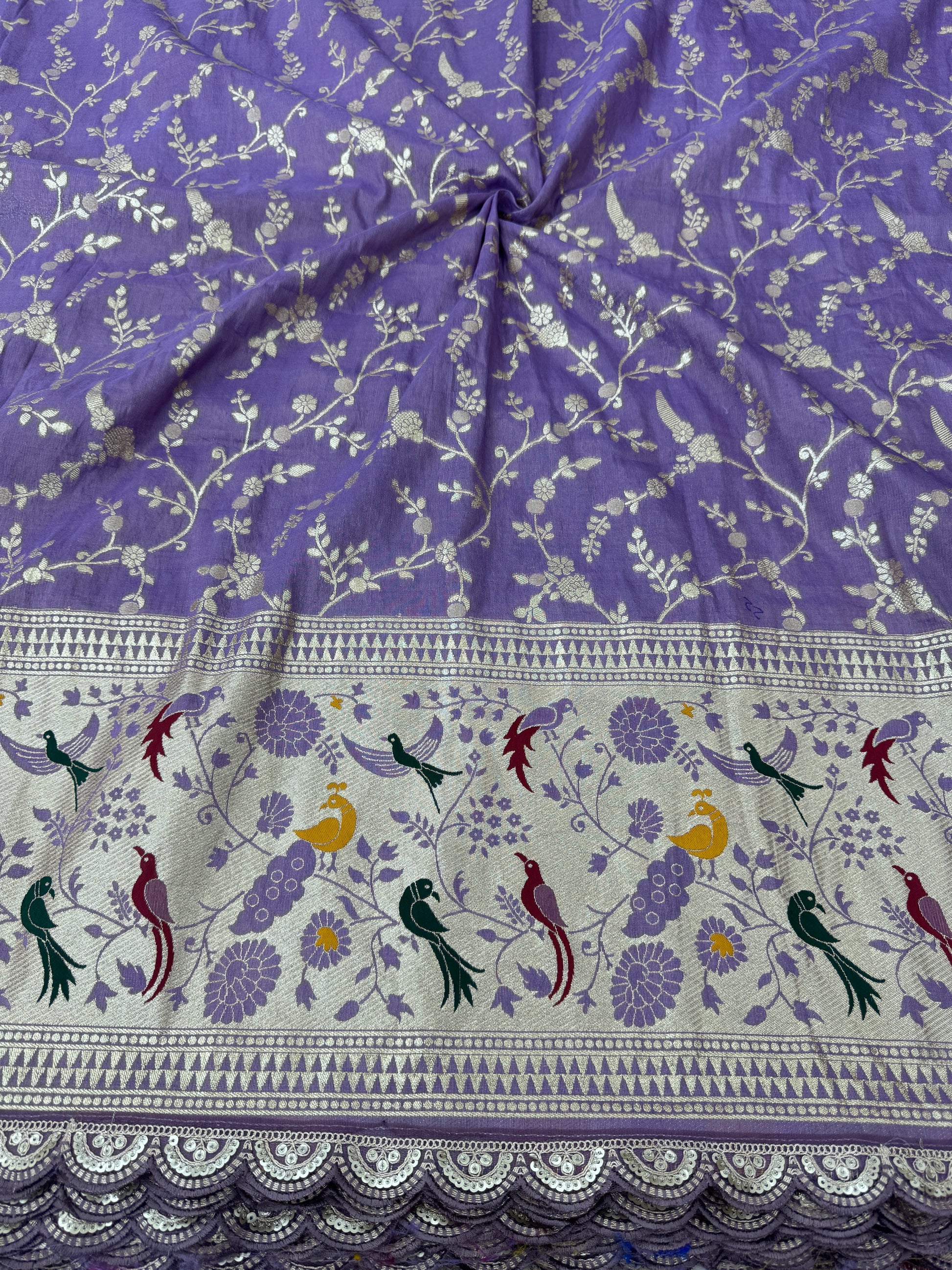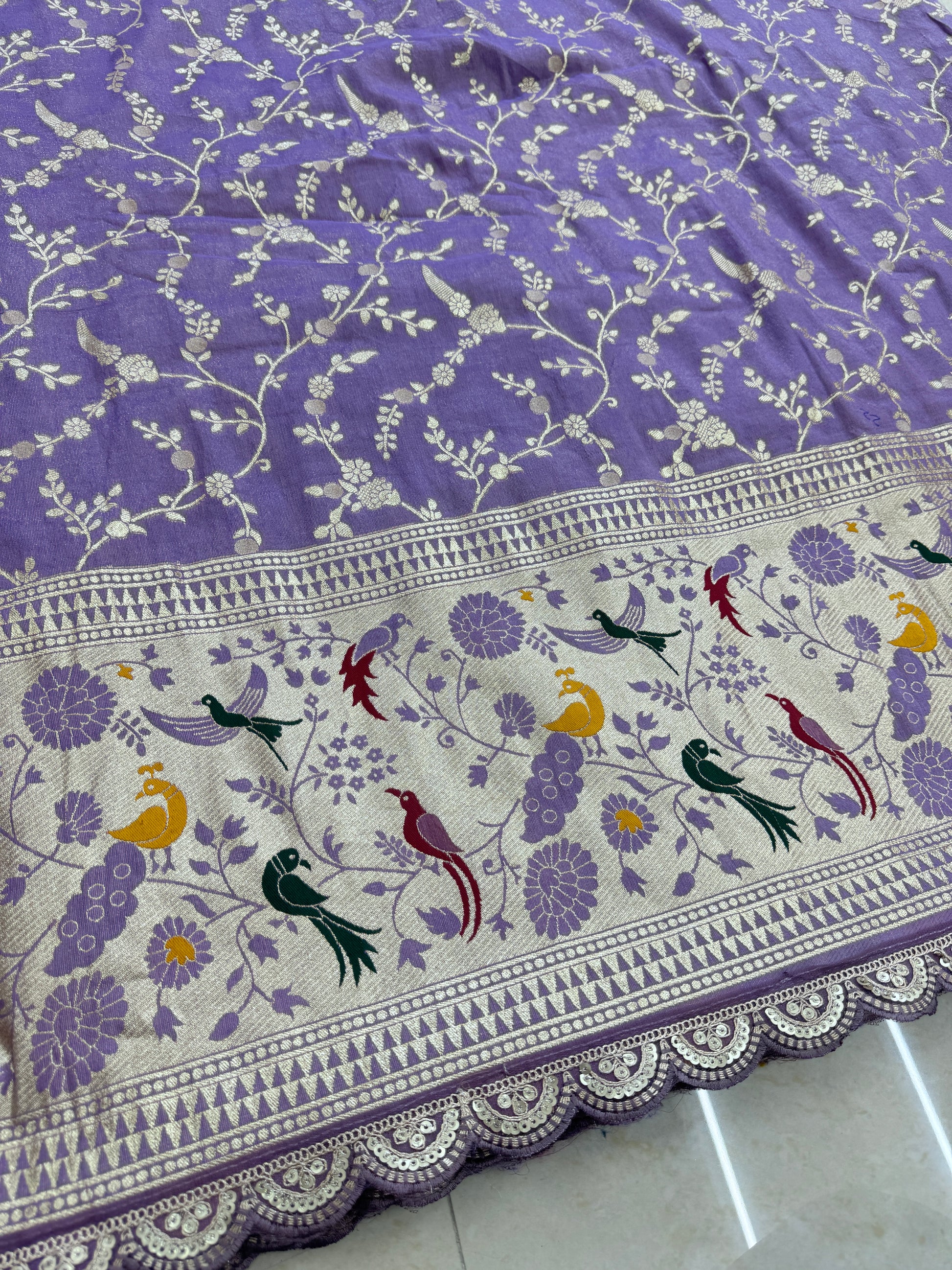 Tissu banarasi fabrics paitanick border with lace birds Desing 45-46 inch width