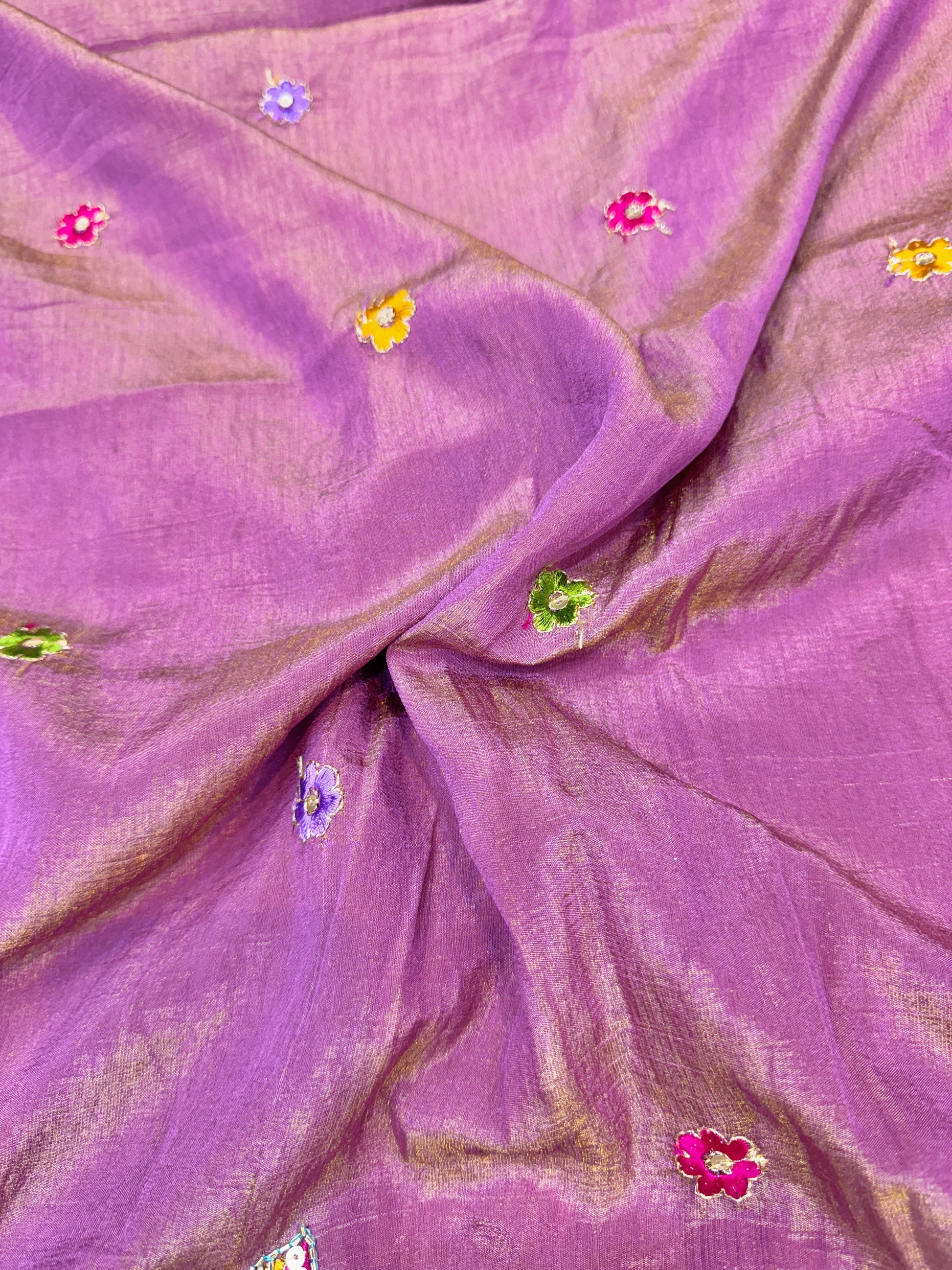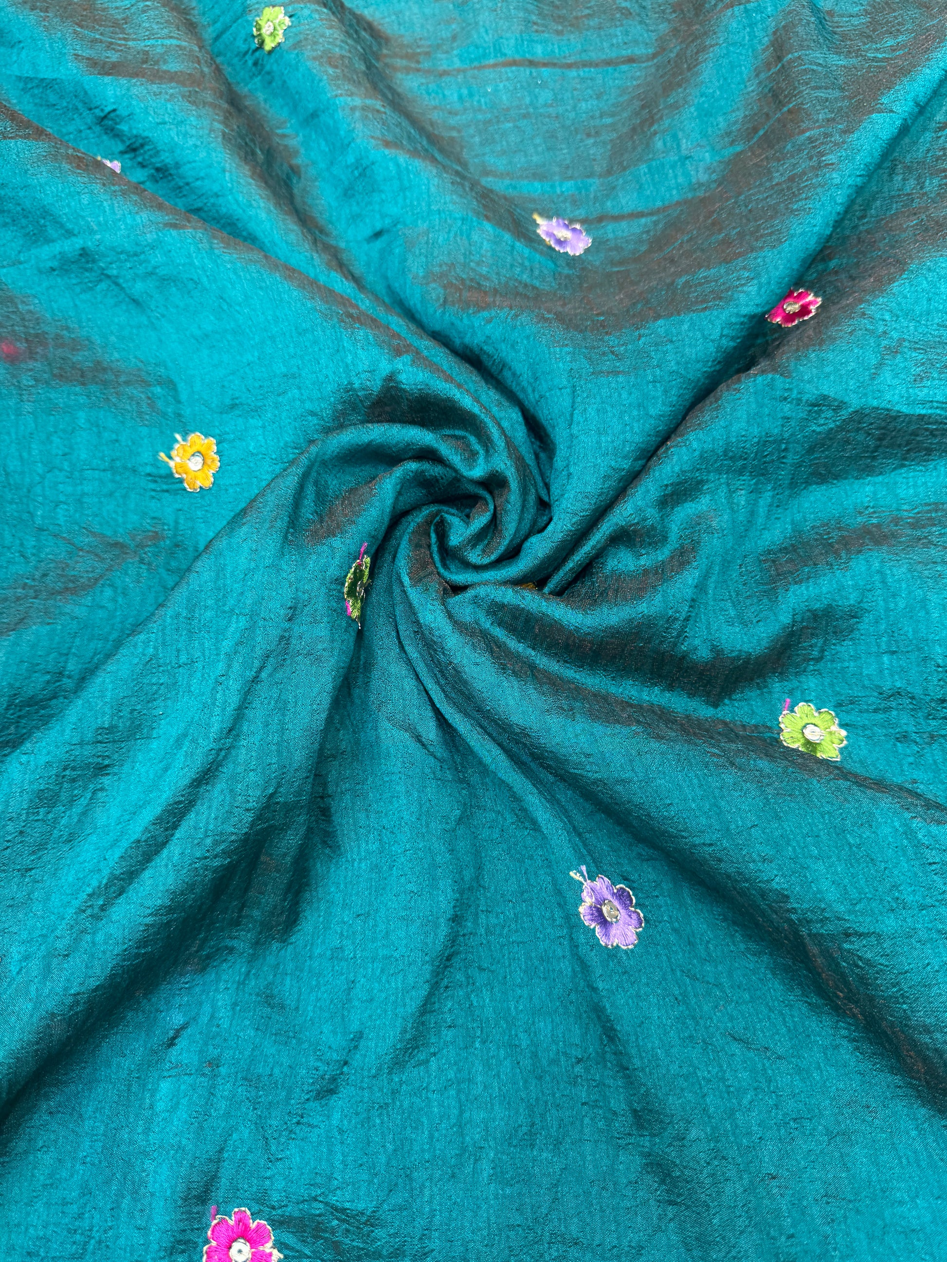 vichitra silk Luxury Embroidered Fabric with Sequins & Multicolor Threadwork